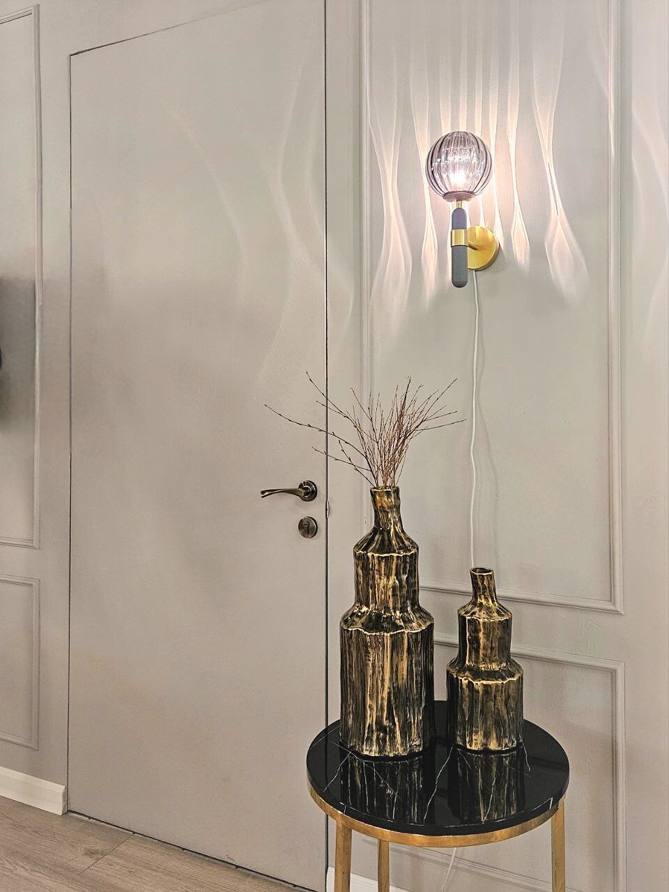 Созданное из высококачественных материалов – металла, стекла и камня – бра "Brielle" отличается долговечностью и прекрасным внешним видом. Золотой цвет корпуса придает изделию особую роскошь и благородство, в то время как серый оттенок и зеркальный плафон добавляют глубину и многогранность его восприятия.
