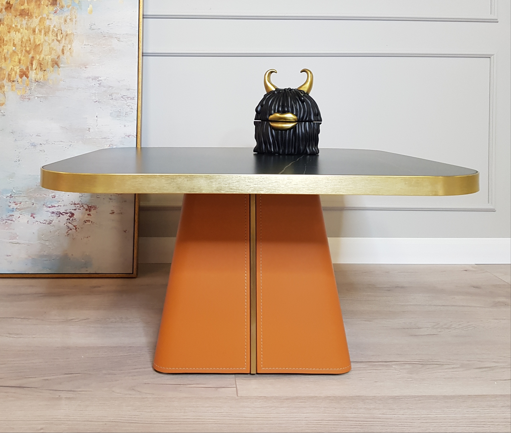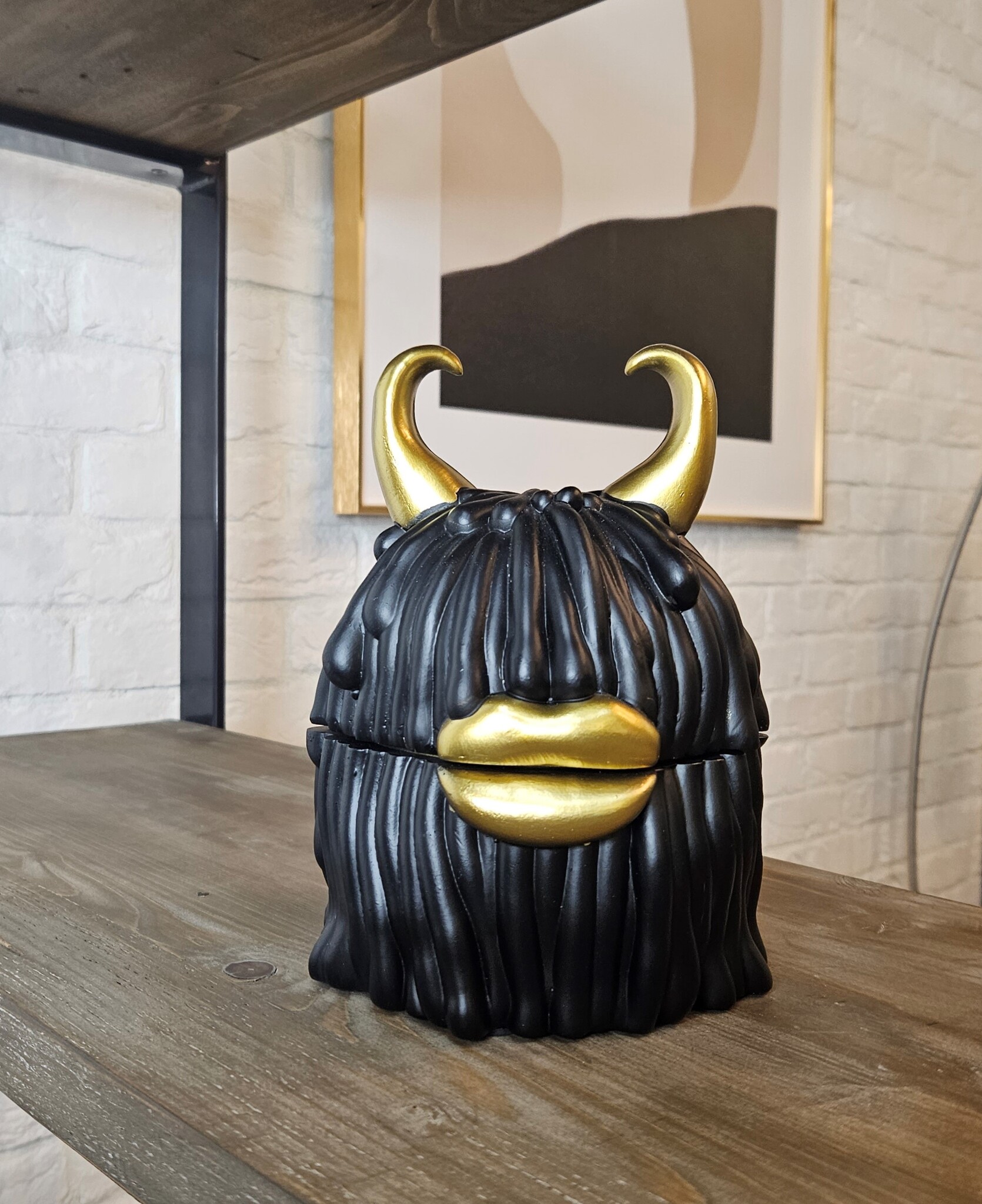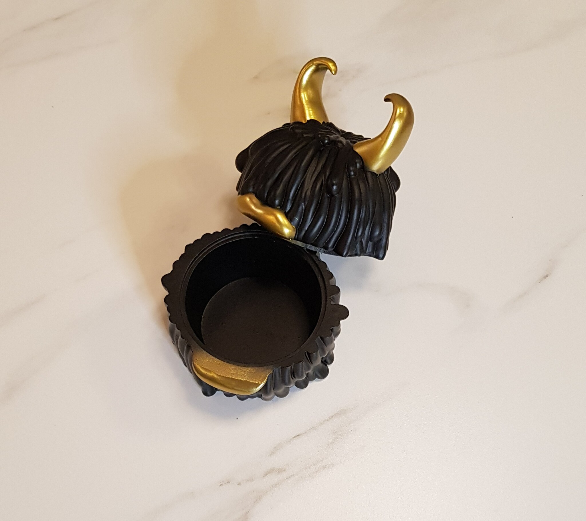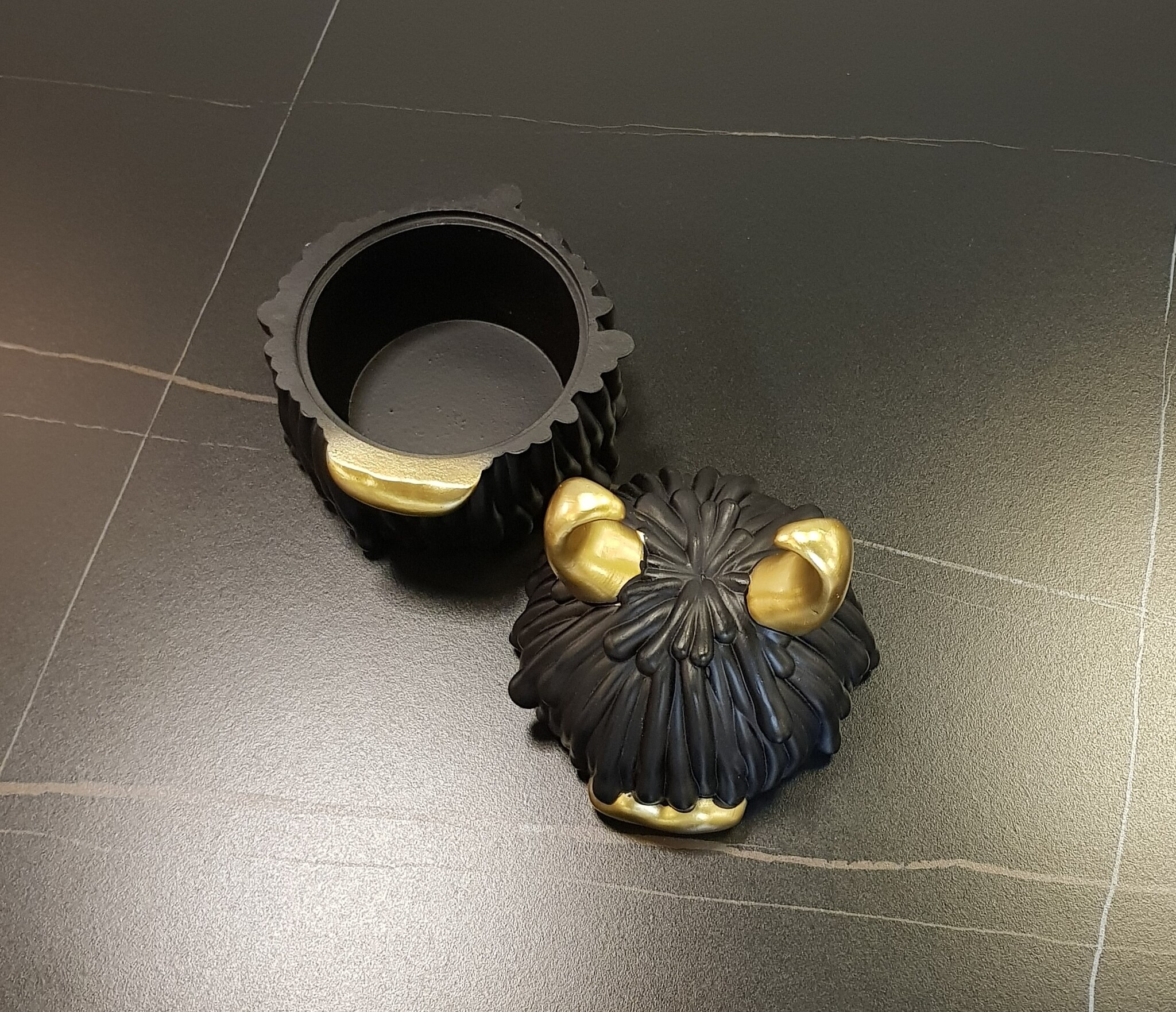 Оригинальная шкатулка-декор в современный стиле с матовой текстурой в черно-золотом цвете.