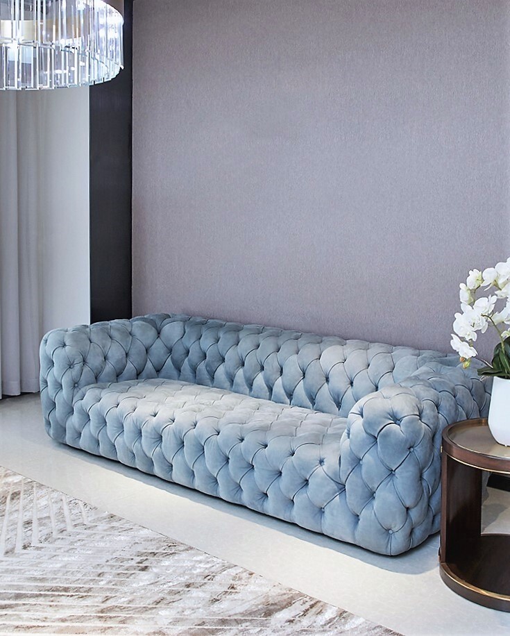 Изысканный велюровый материал обивки придает дивану Chester не только шикарный вид, но и неповторимые тактильные ощущения. Мягкий и приятный на ощупь, велюр обеспечивает комфортное использование мебели на протяжении многих лет.