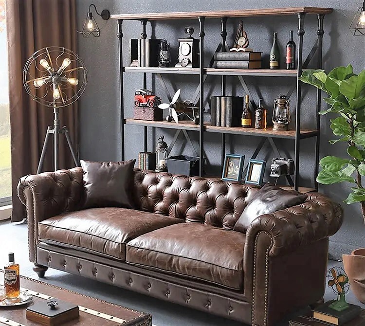 Респектабельный диван Chesterfield в стиле Loft сочетает в себе безупречное исполнение и высокое качество материалов.