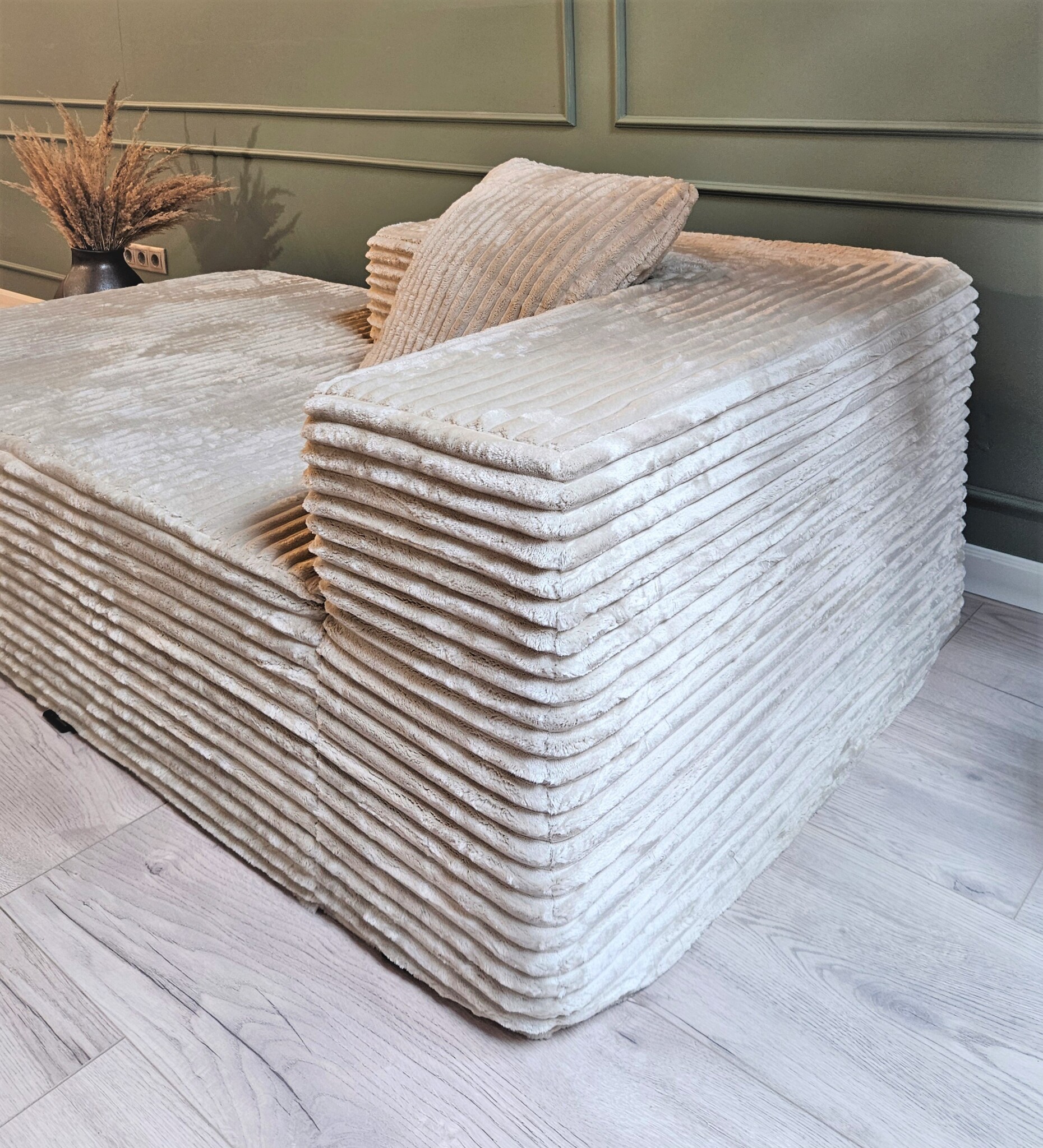 Диван в мягкой плюшевой ткани велсофт вельвет.