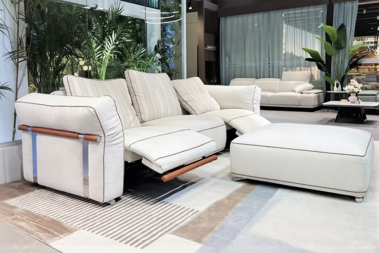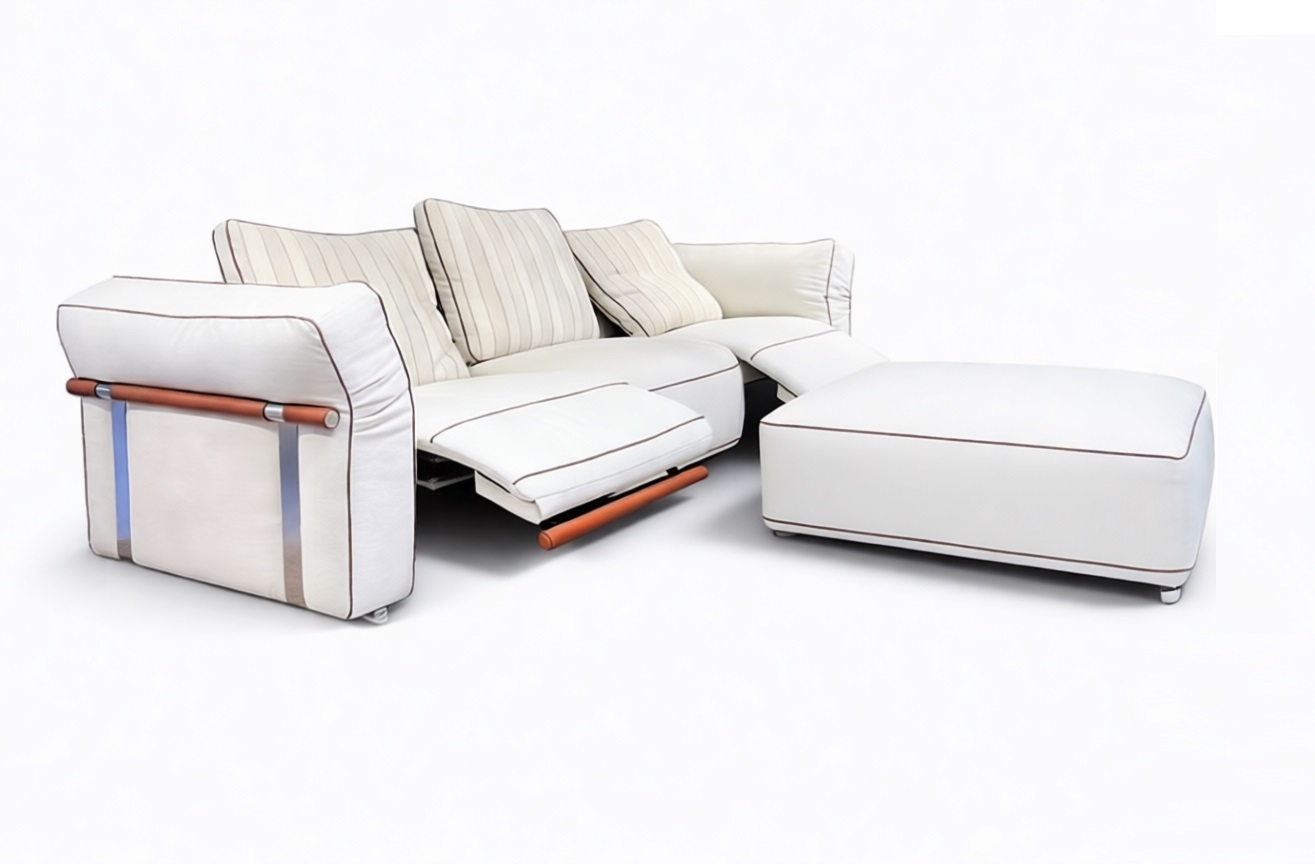 Диван-реклайнер оснащен раздвижными электро-механизмами , позволяющими подобрать наиболее удобное положение.