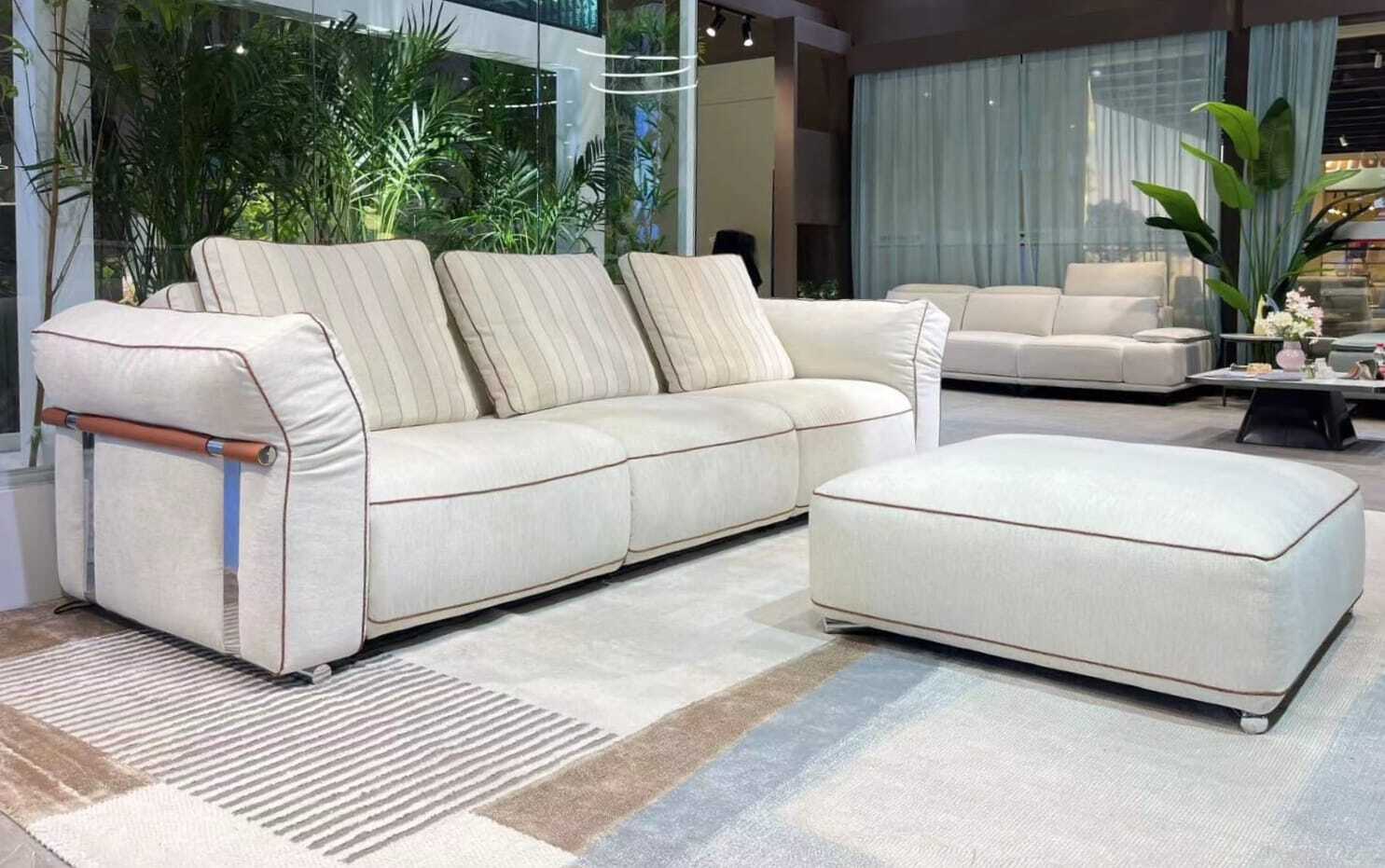 Диван позволяет менять наклон спинки и поднимать подножку до полулежащего положения.