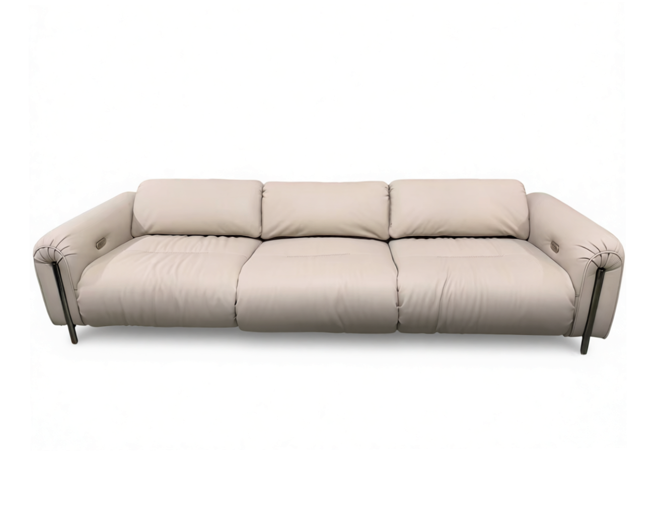 Диван-реклайнер оснащен двумя раздвижными электро-механизмами и регулируемыми подголовниками, позволяющими подобрать наиболее удобное положение.
