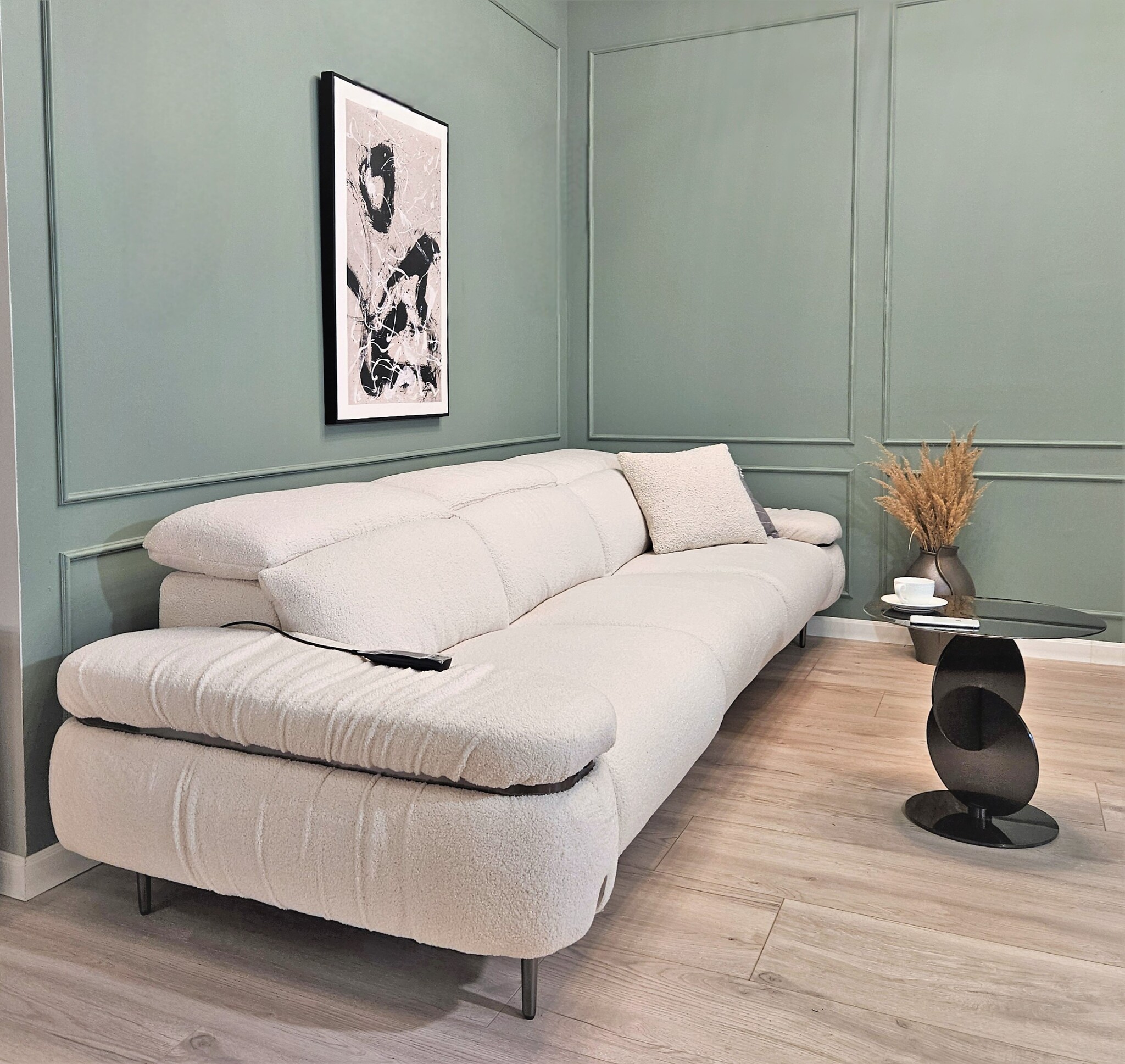 Диван-реклайнер Sophy – это воплощение комфорта и стиля для современной гостиной. Этот роскошный предмет мебели сочетает в себе элегантность дизайна и функциональность современных технологий. Диван идеально впишется в просторную комнату, создавая уютную атмосферу для отдыха и общения.