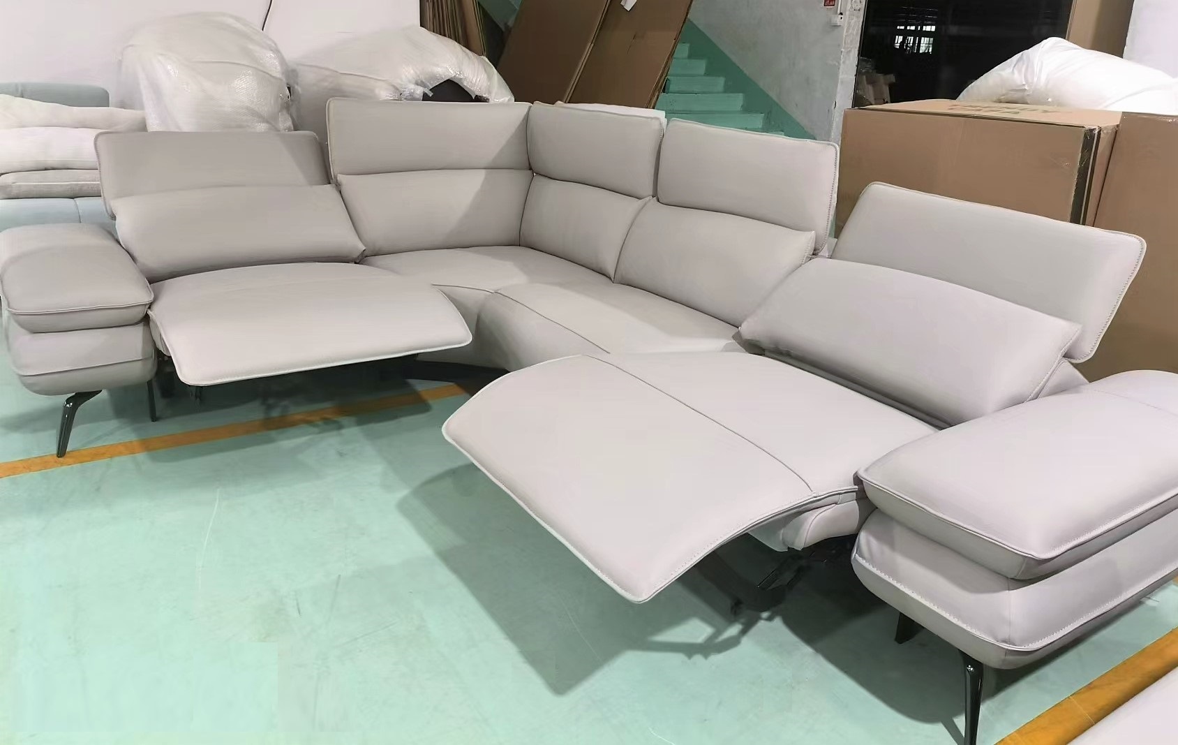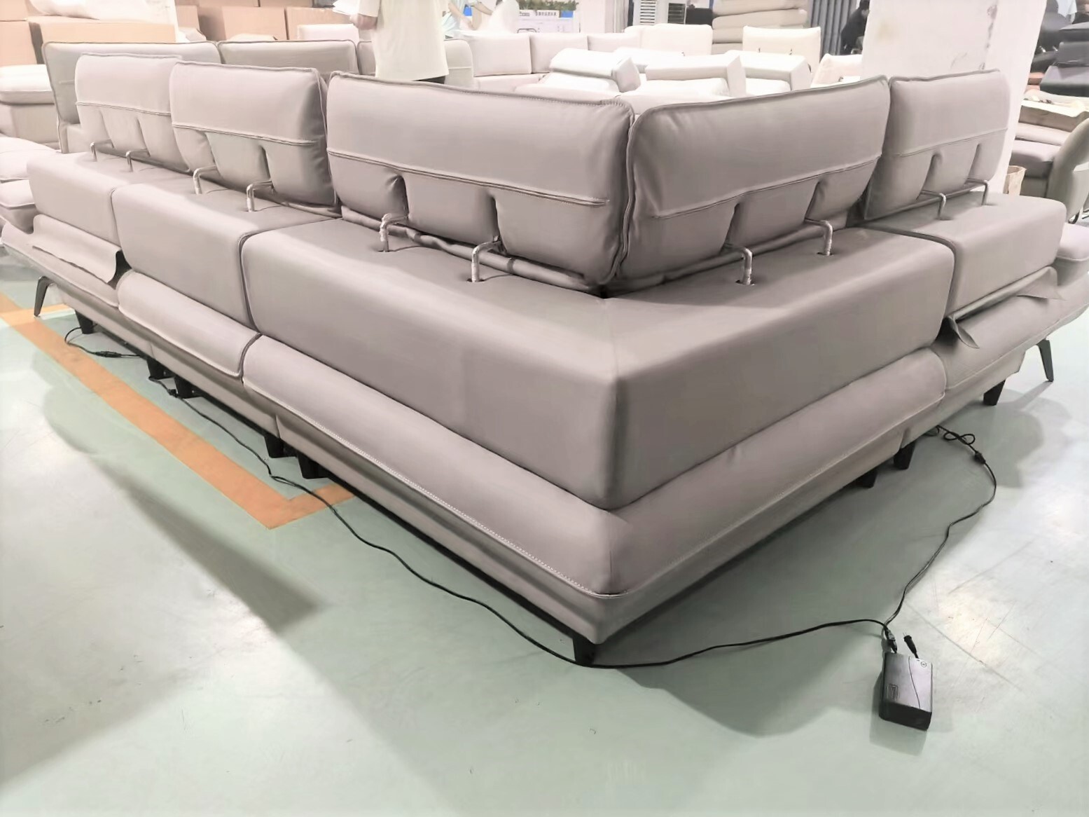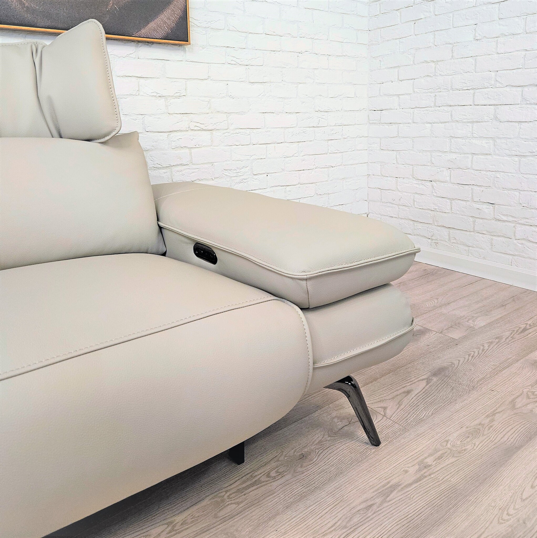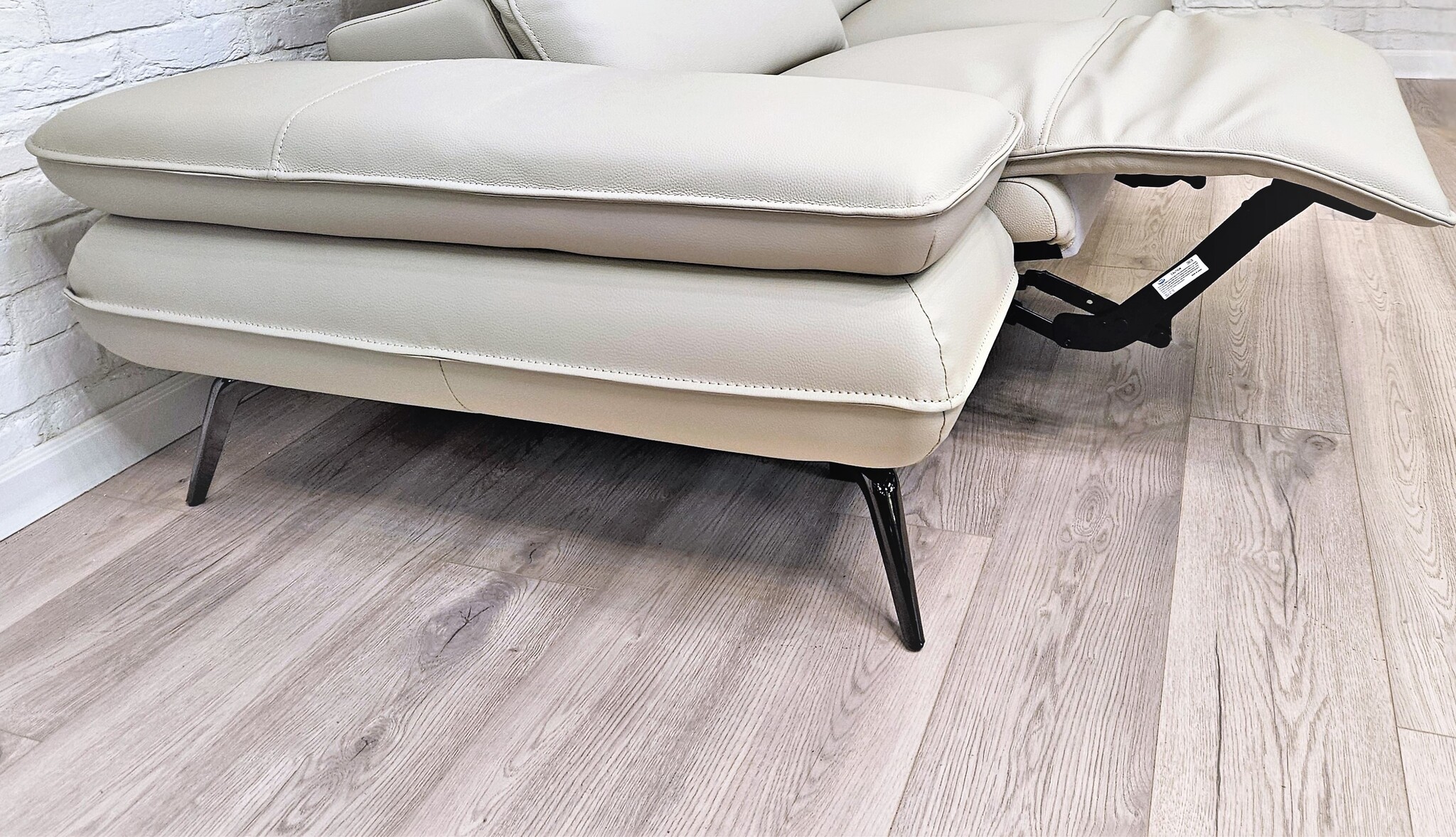 Диван-реклайнер оснащен двумя раздвижными электро-механизмами и регулируемыми подголовниками, позволяющими подобрать наиболее удобное положение.