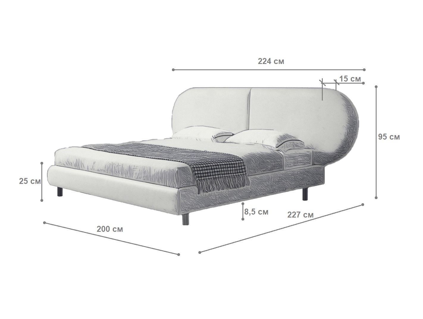 Кровать представлена в ткани велюр, цвет французский серый.