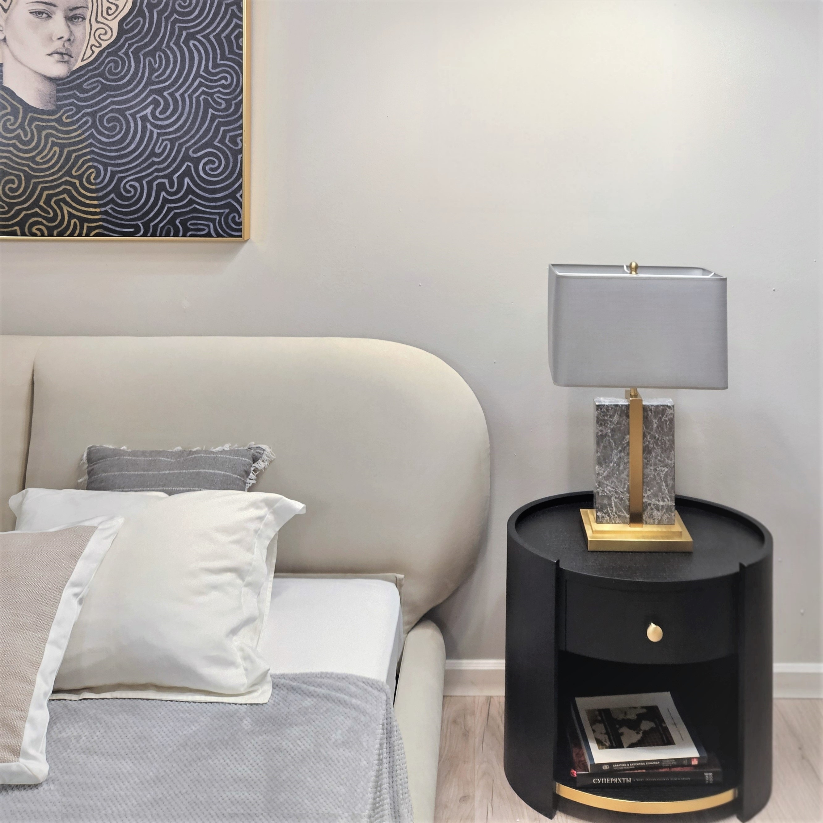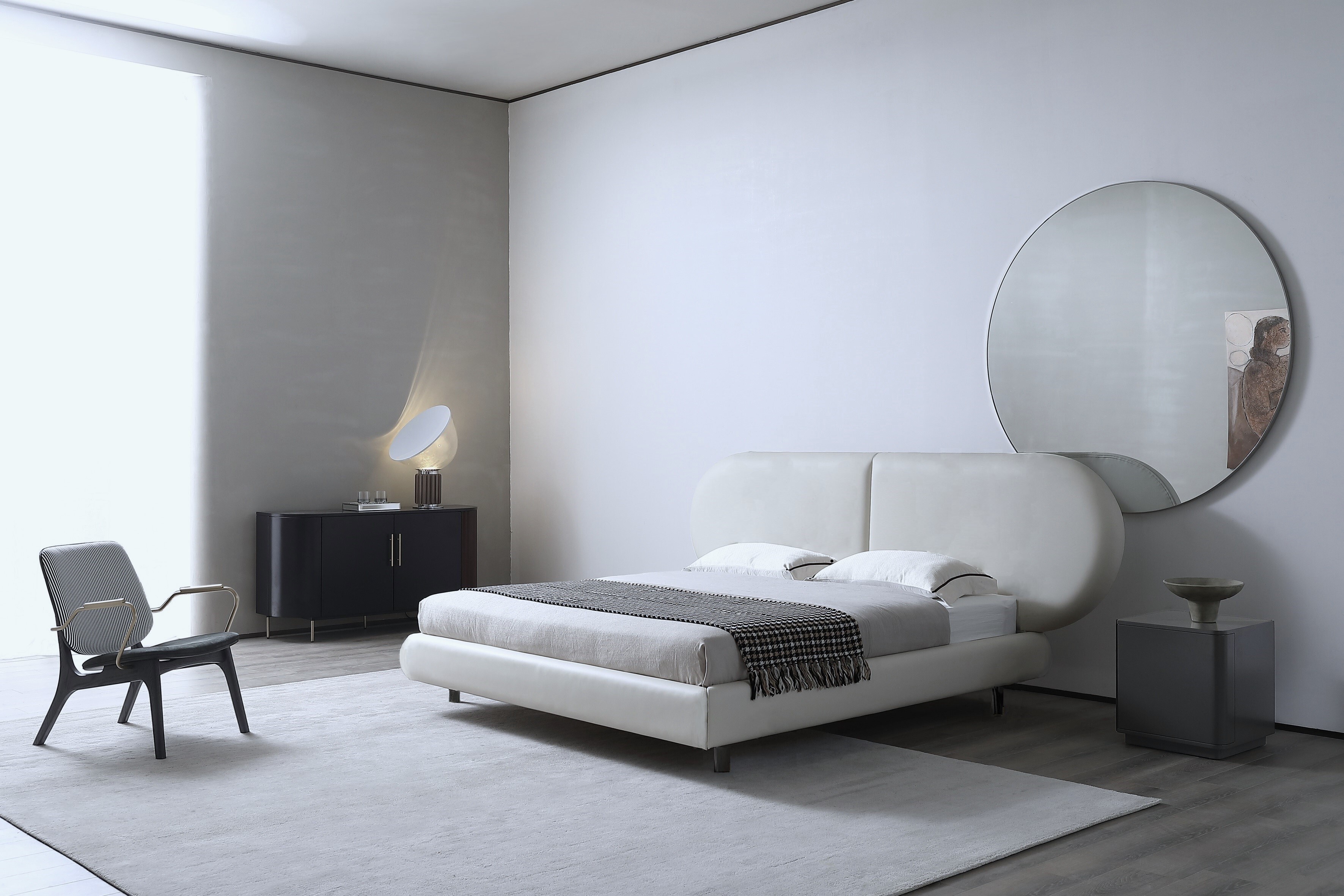 Простые линии и элегантный силуэт кровати делают ее гостеприимной как ночью, так и днем.
