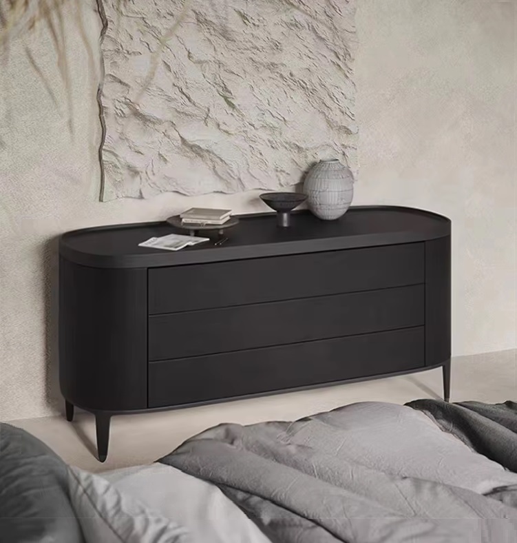 Округлая форма, гладкая поверхность и натуральные материалы делают комод подходящим для разных стилей интерьера.