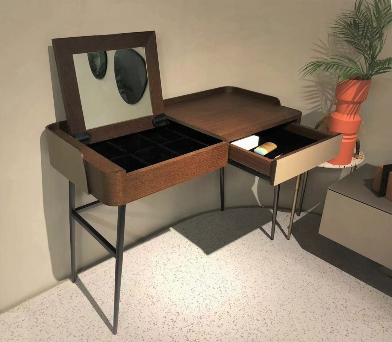 Легко поддерживать порядок, просто закрыв откидное зеркало. Элегантное обрамление вдоль края не позволит предметам падать. Может стоять как у стены так в центре комнаты.