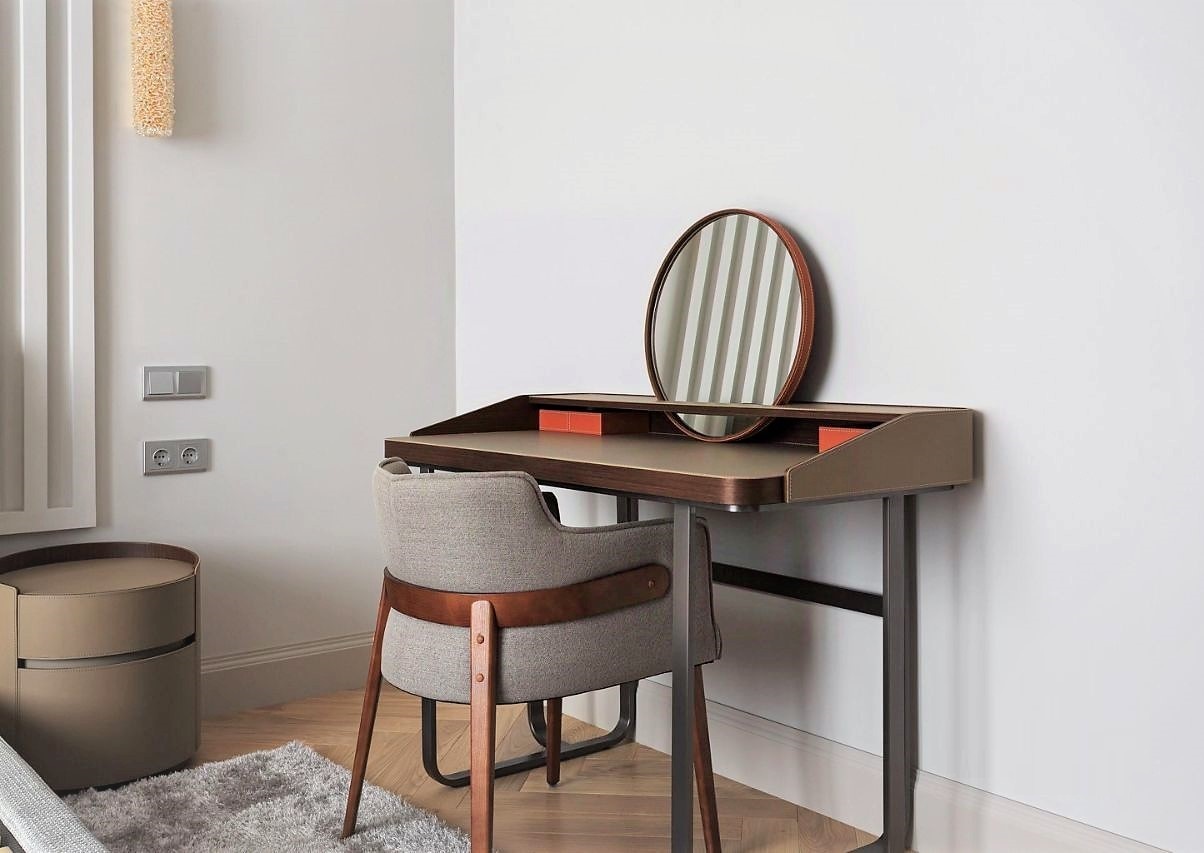 Элегантная консоль может служить туалетным или письменным столиком. Здесь достаточно места как для косметики, так и для ручек и ноутбука.
