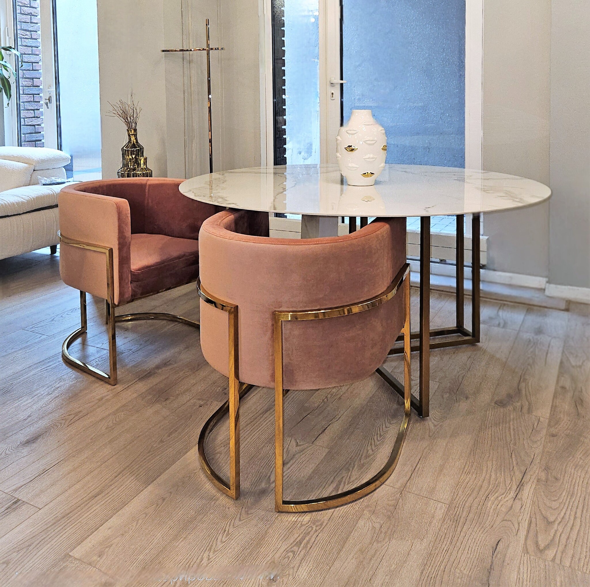 Элегантный силуэт кресла и удобные подушки обеспечивают хорошую поддержку поясницы, а широкие подлокотники и мягкая обивка создают идеальный комфорт для длительных обедов.