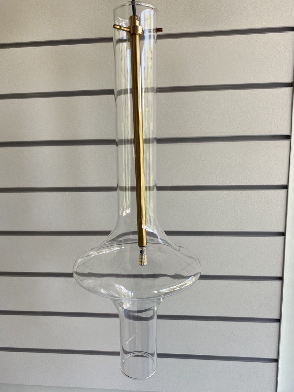 Диаметр плафона — 16 см, высота светильника — 47 см. Эти параметры делают люстру подходящей для комнаты с любыми потолками. База имеет диаметр 10 см и высоту 2,5 см, что обеспечивает надежное крепление. Длина подвеса достигает 110 см. Можно адаптировать высоту изделия в соответствии с высотой потолка.