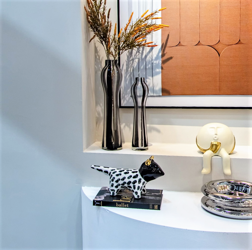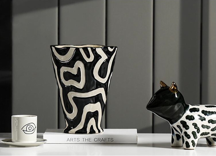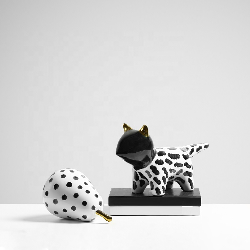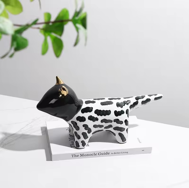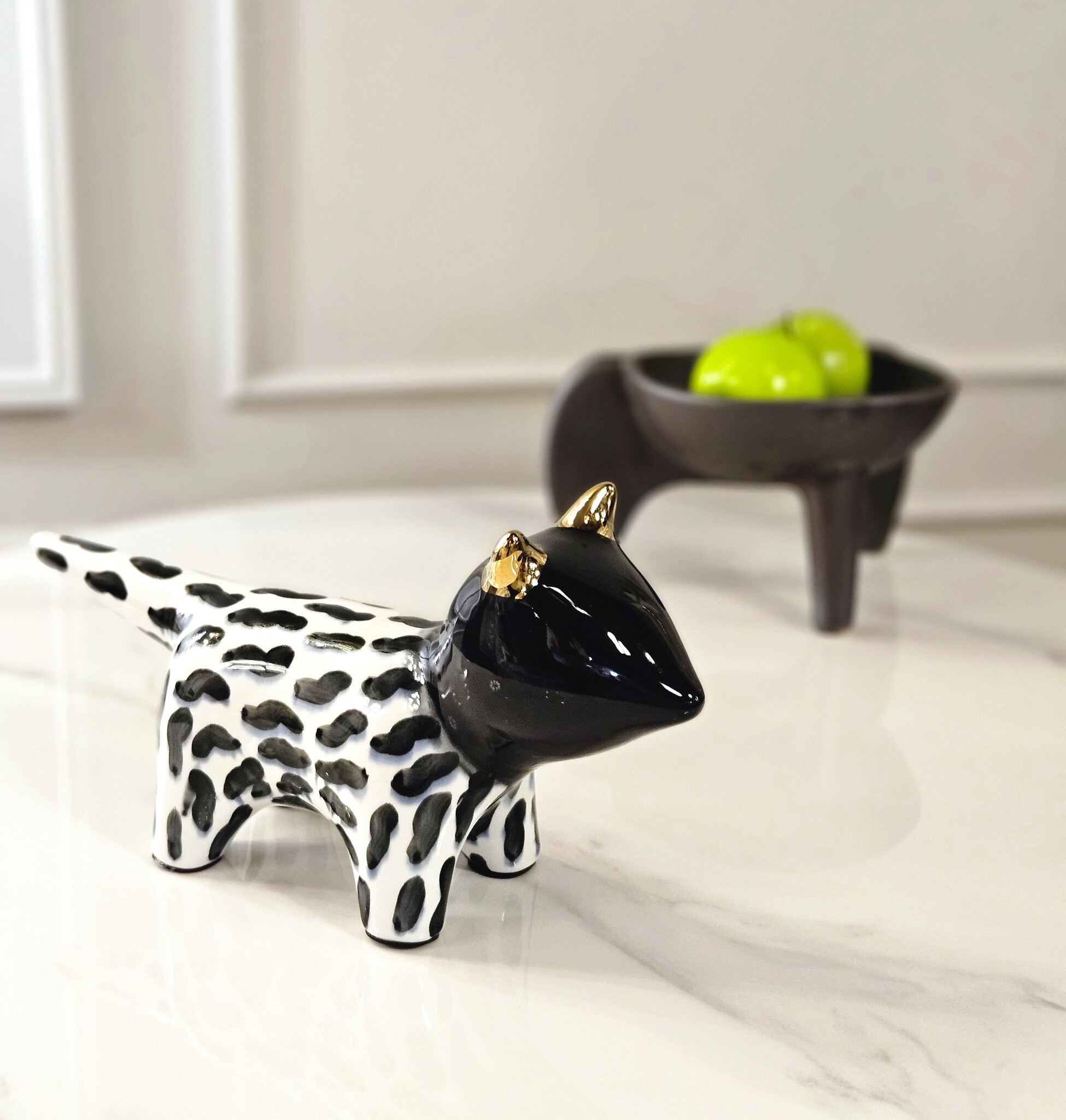 Оригинальная в современный стиле статуэтка собачки с черно-белой текстурой.