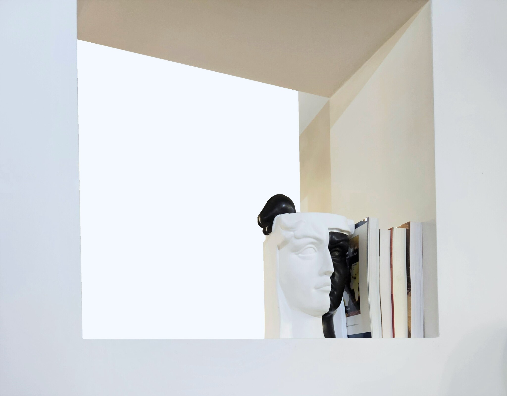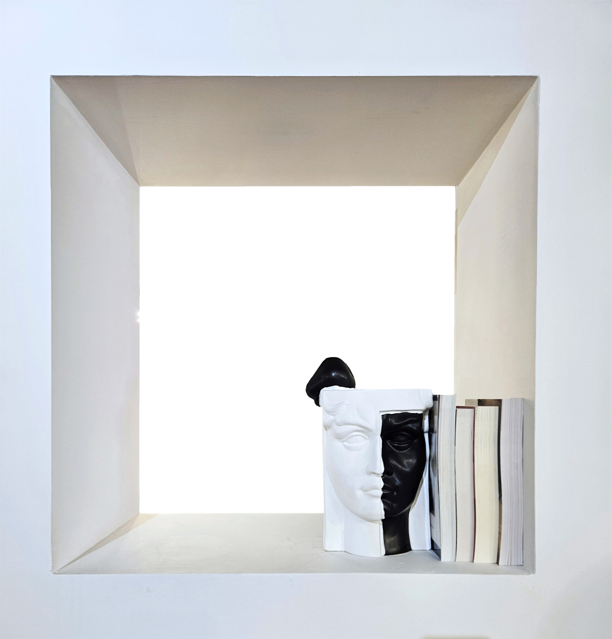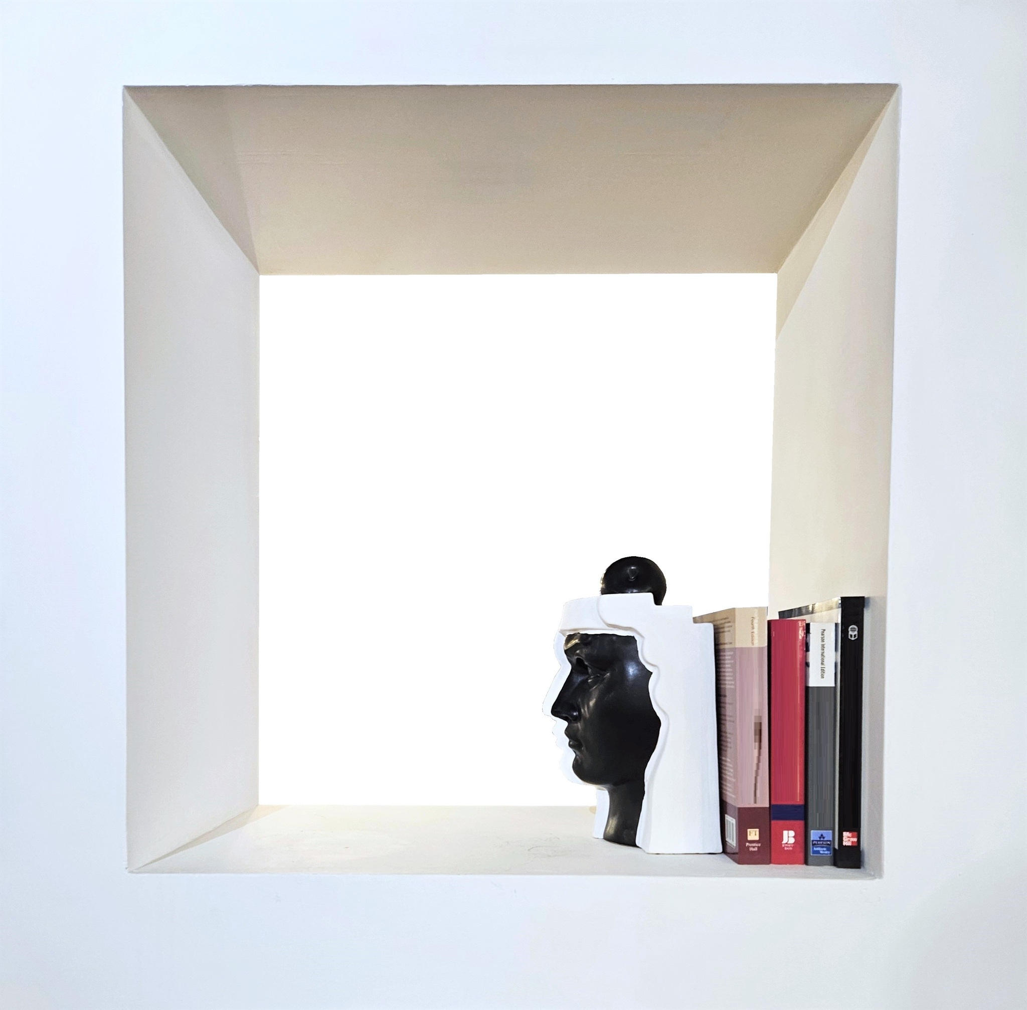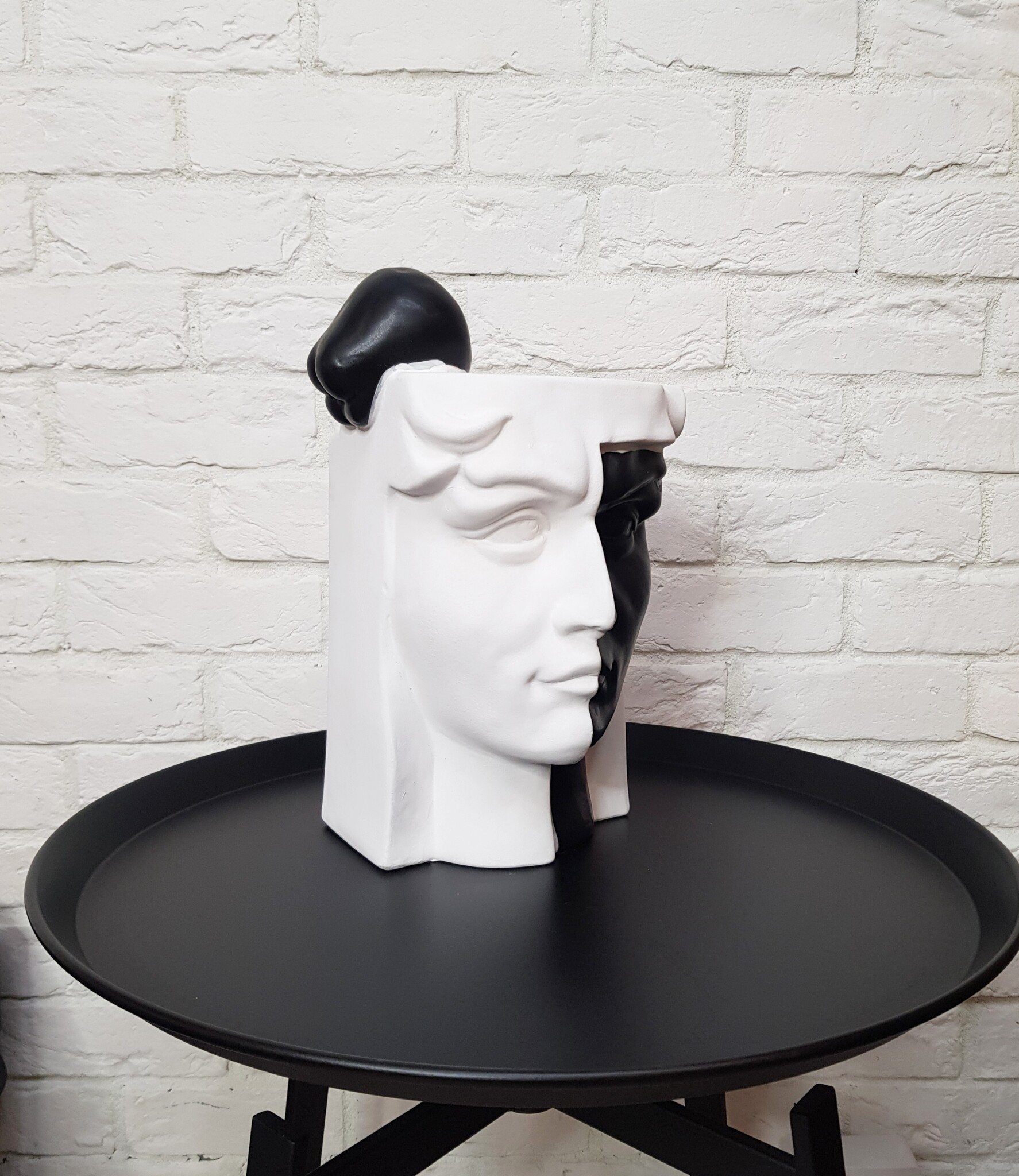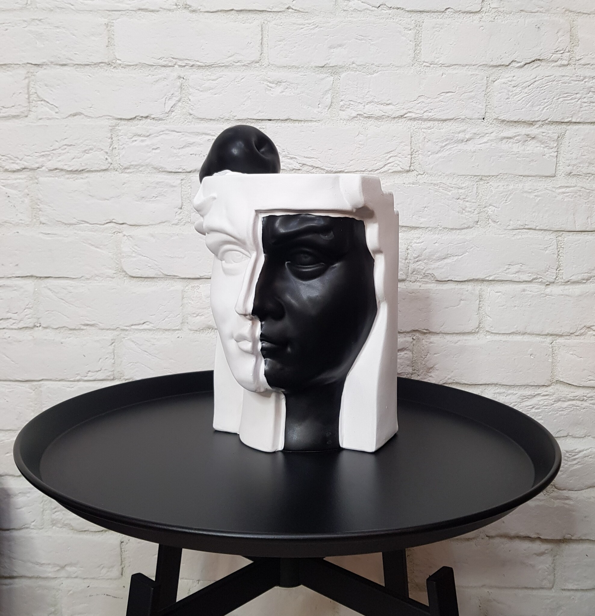 Статуэтка Double-faced – это черно-белое керамическое украшение с четкими линиями, отражающими сочетание искусства и времени.
