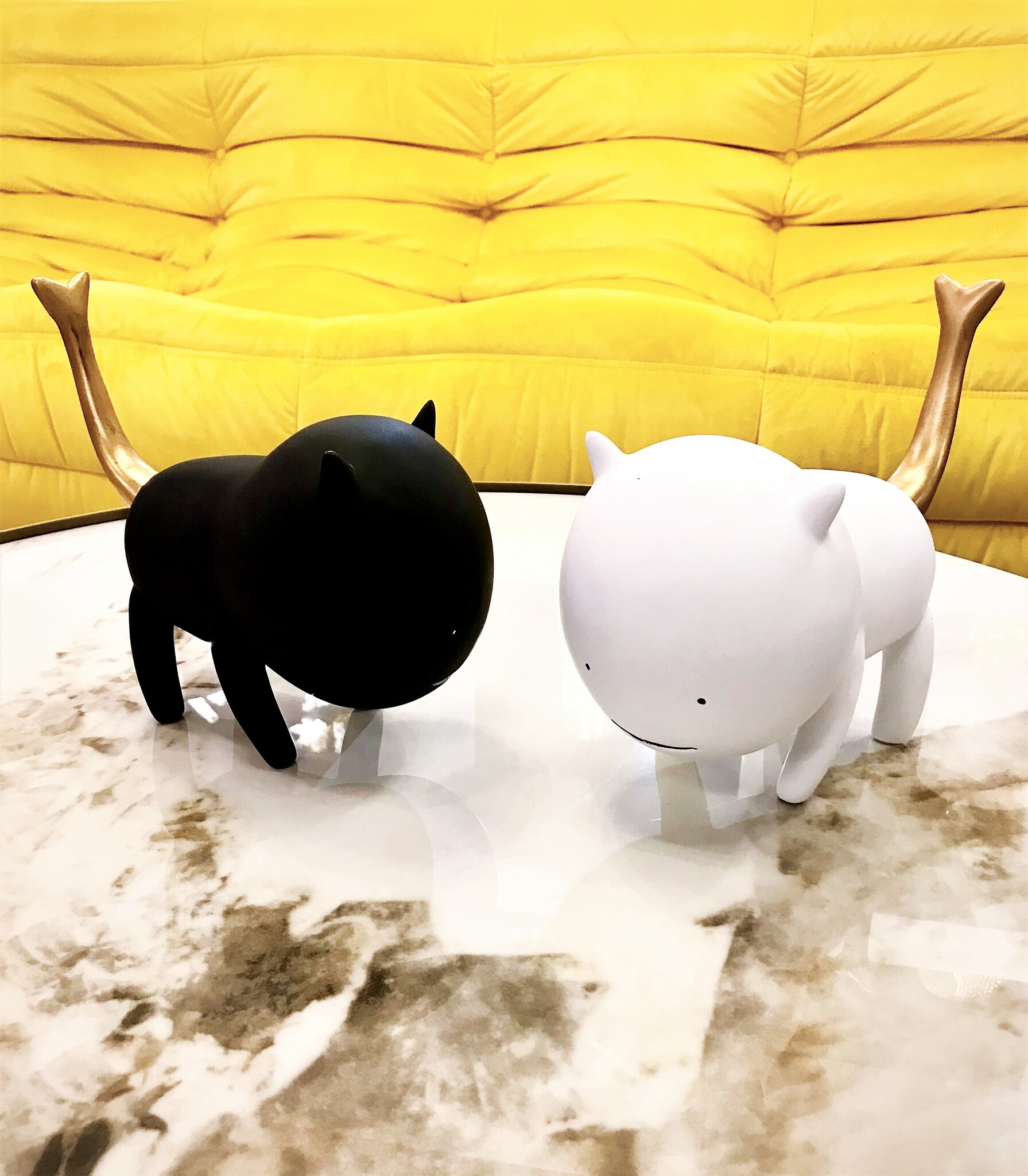 Эти стильные статуэтки котов хороши в сочетании белого и черного цвета. Благодаря необычной форме они очаровательны и неповторимы.