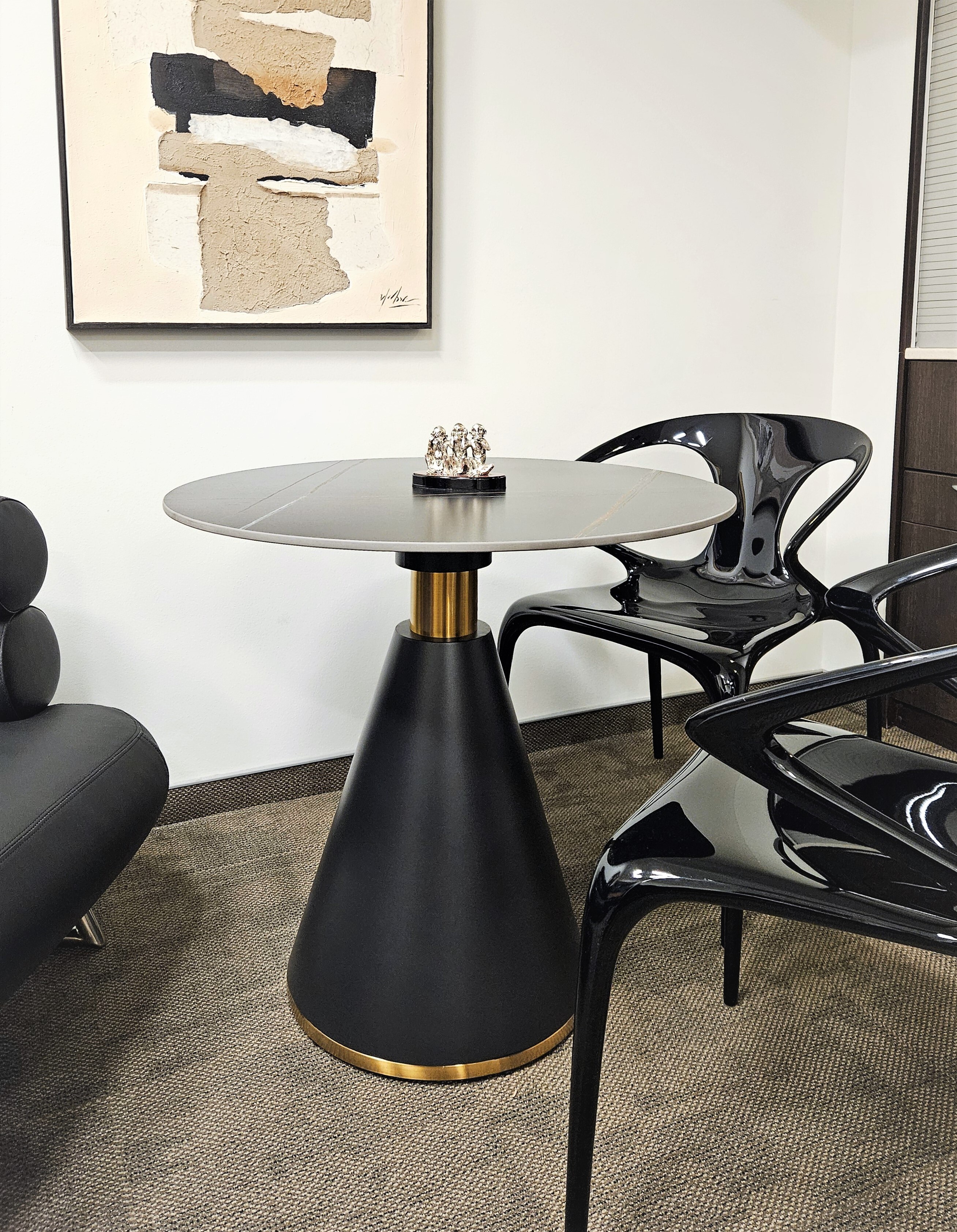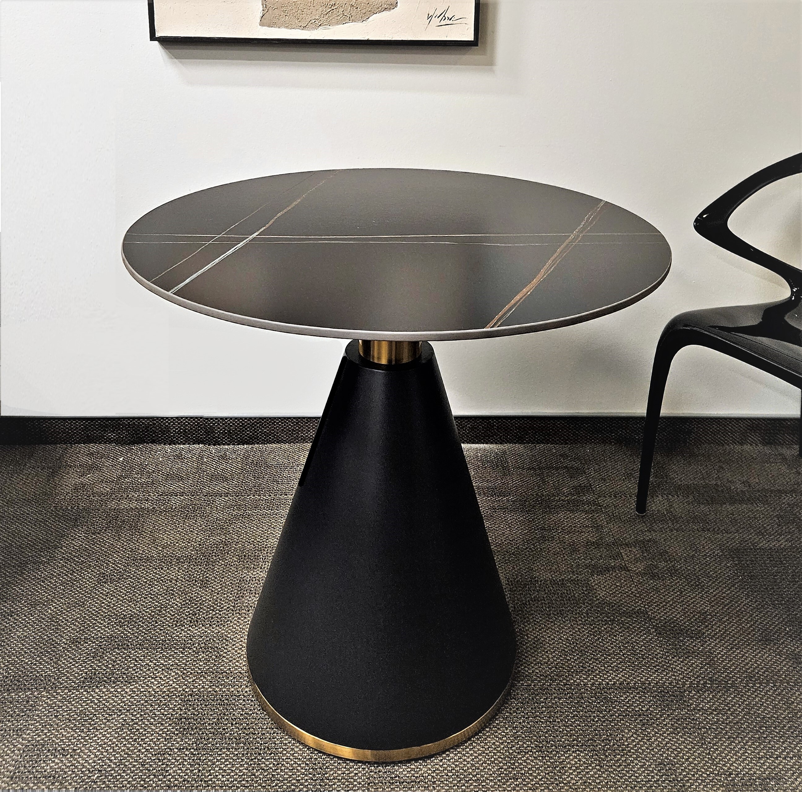 Ножка из металла, цвет черный матовый с латунными вставками.