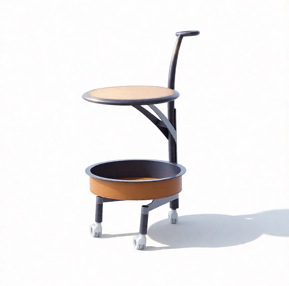 Круглая форма, удобная ручка и бесшумное передвижение на роликах обеспечивают комфорт и практичность использования сервировочного столика.