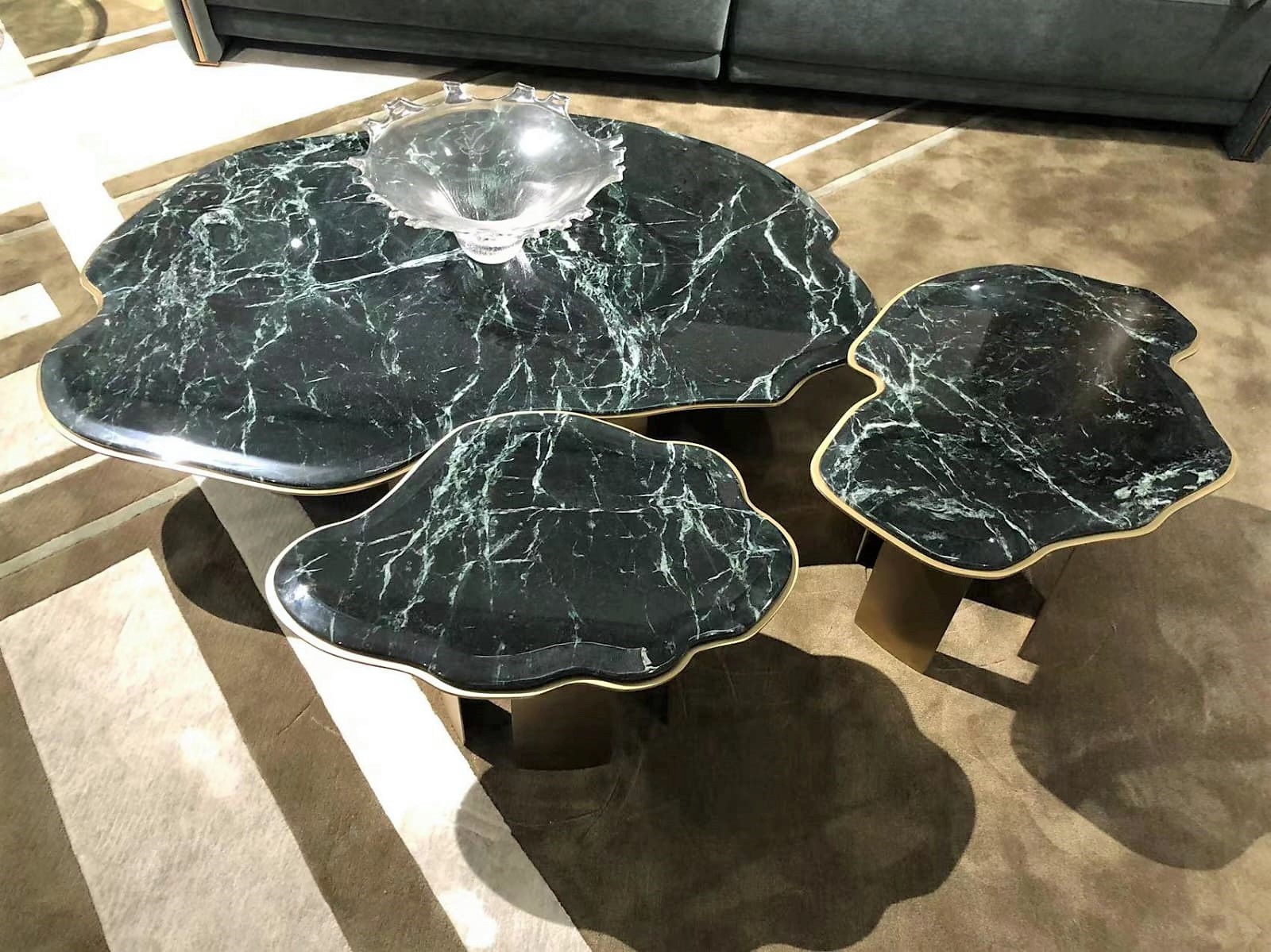 Столешница из мрамора, цвет зеленовато-чёрный с серыми прожилками.