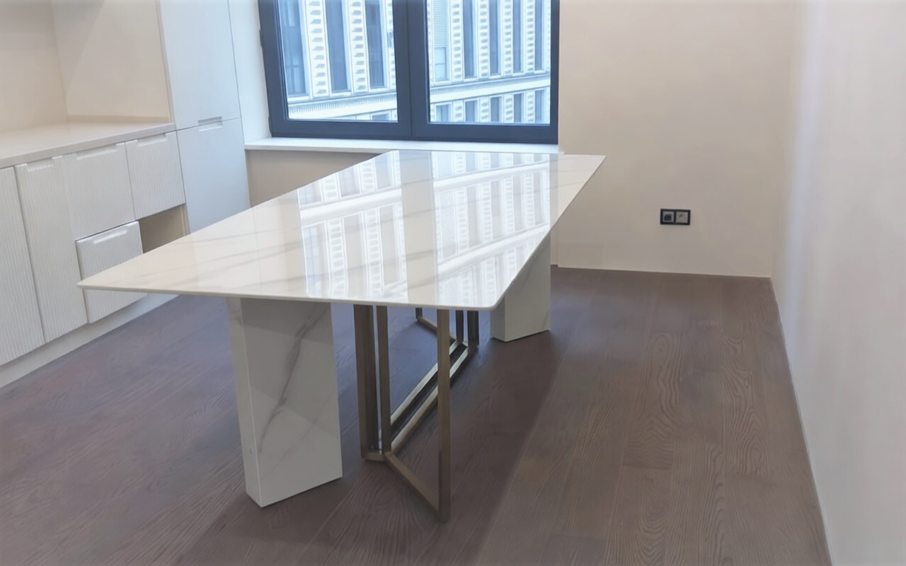 Изящная геометрия вертикальных опор наполнена элегантностью и подчеркивают особую композицию стола. Великолепное сочетание эстетики и качества стола добавит в интерьер нотки современной роскоши.