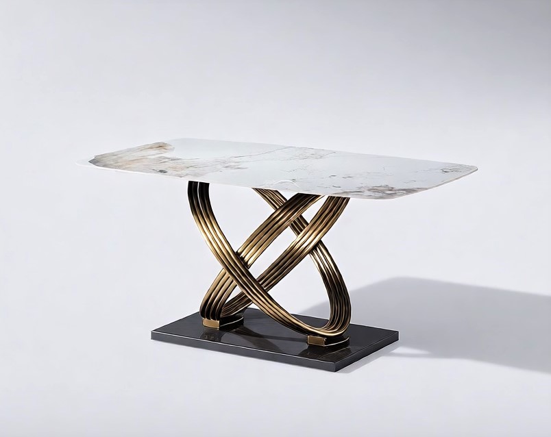 Изящная геометрия двух полукруглых опор наполнена элегантностью и подчеркивают особую композицию стола в сочетание с безупречной столешницей из керамогранита добавит в интерьер нотки минималистичной роскоши.