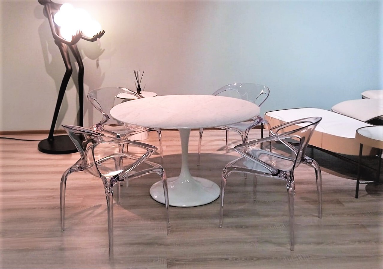 Дизайнерский обеденный стол Tulip из натурального мрамора с безупречной структурой будет главным эстетическим акцентом в вашей гостиной или столовой, а также прекрасно подчеркнет любой стиль интерьера, начиная от классики до современности.