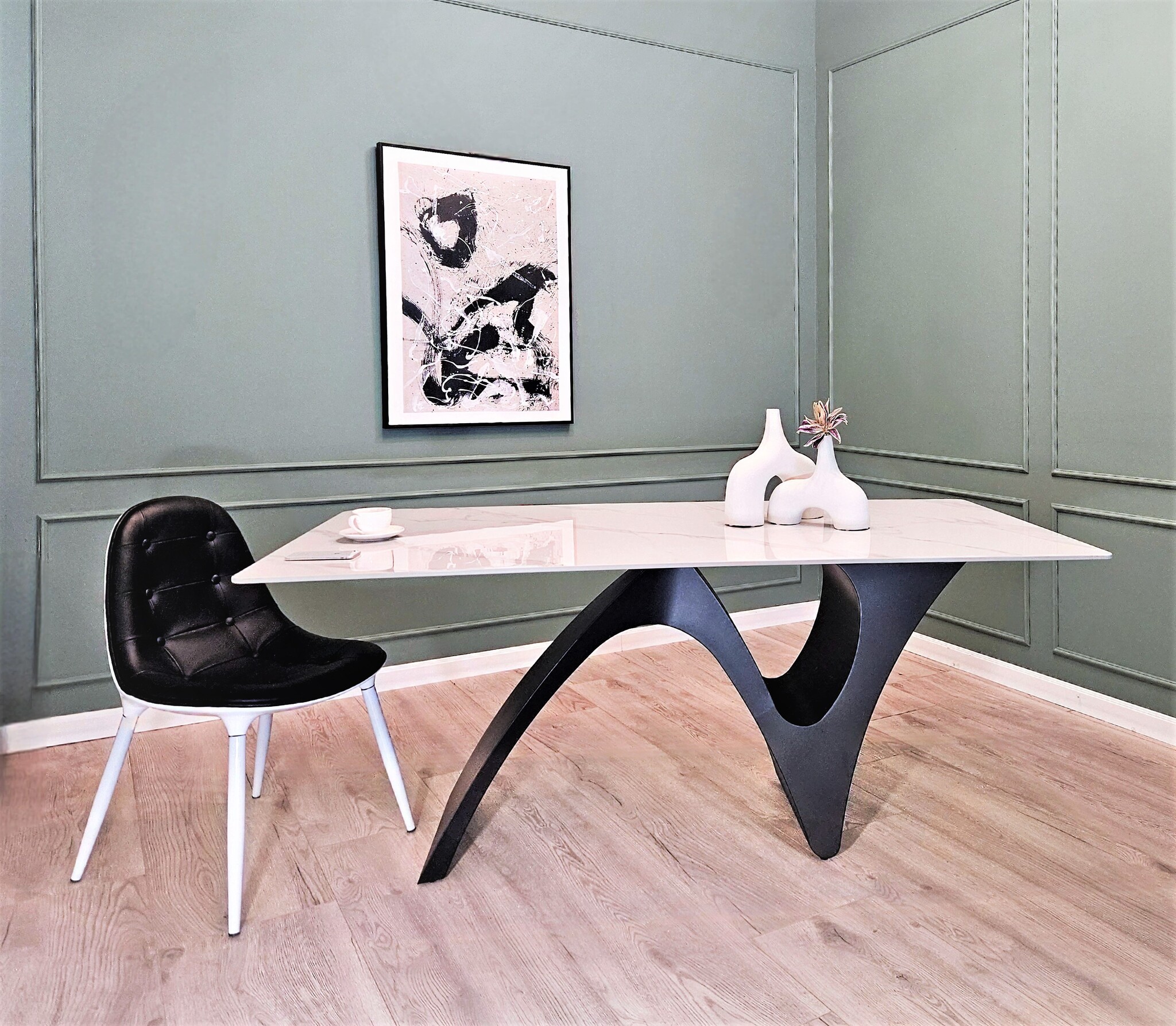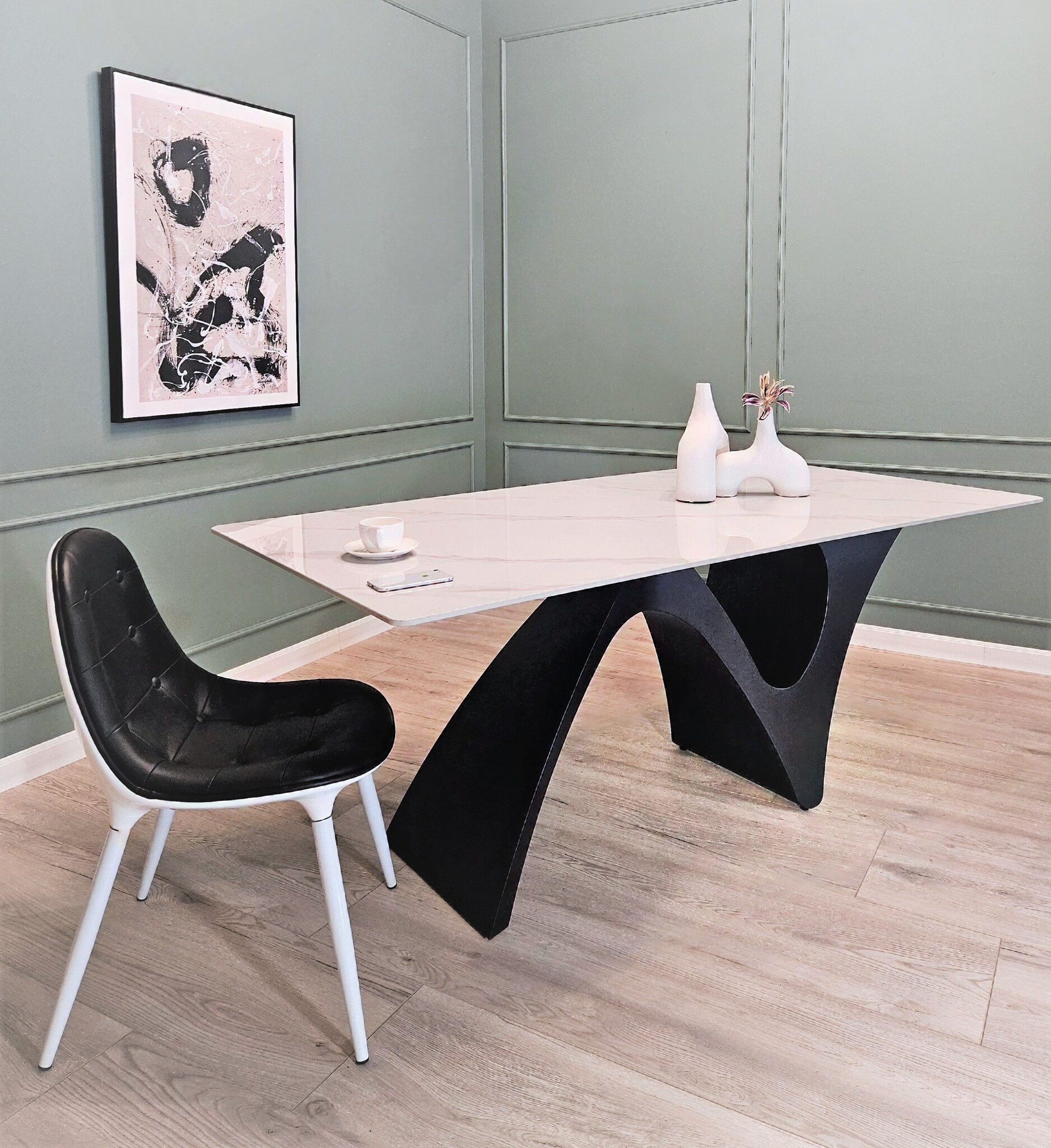 Изящные опоры наполнены элегантностью и подчеркивают особую композицию стола. Великолепное сочетание эстетики и качества стола добавит в интерьер нотки минималистичной роскоши.