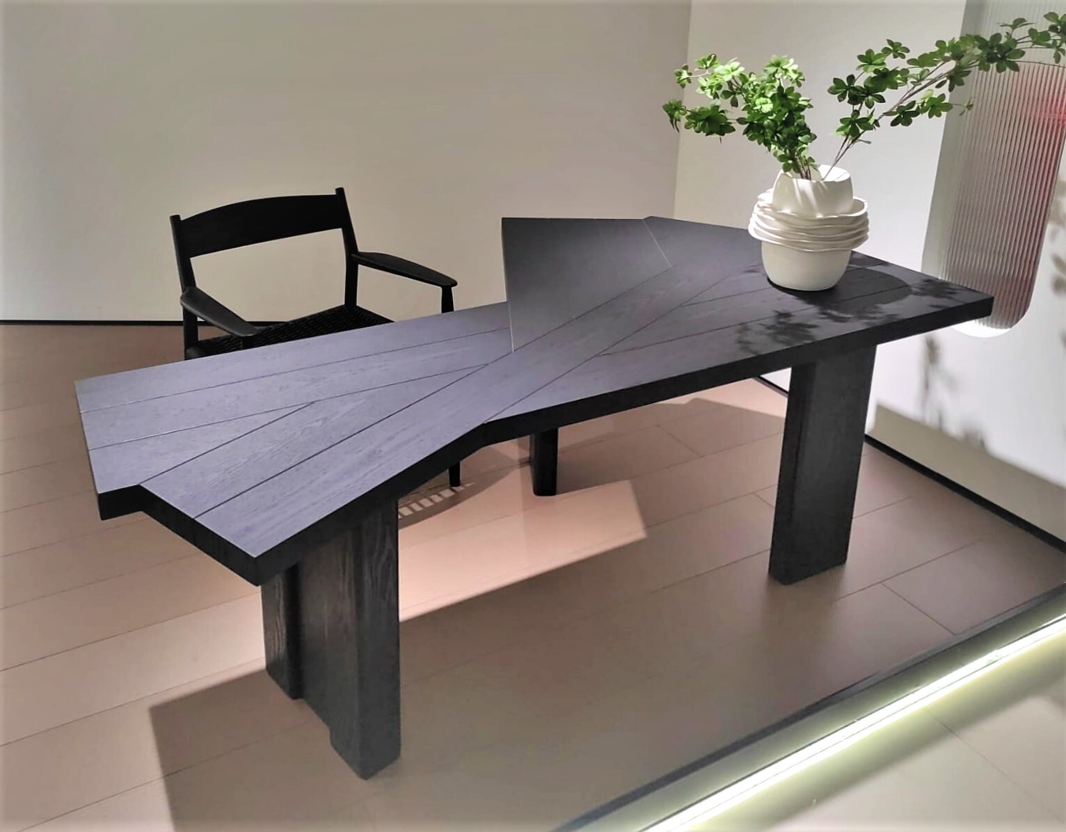 Современный в минималистичном стиле стол Vantaglio, создающий сильное скульптурное впечатление является главным героем модного пространства.