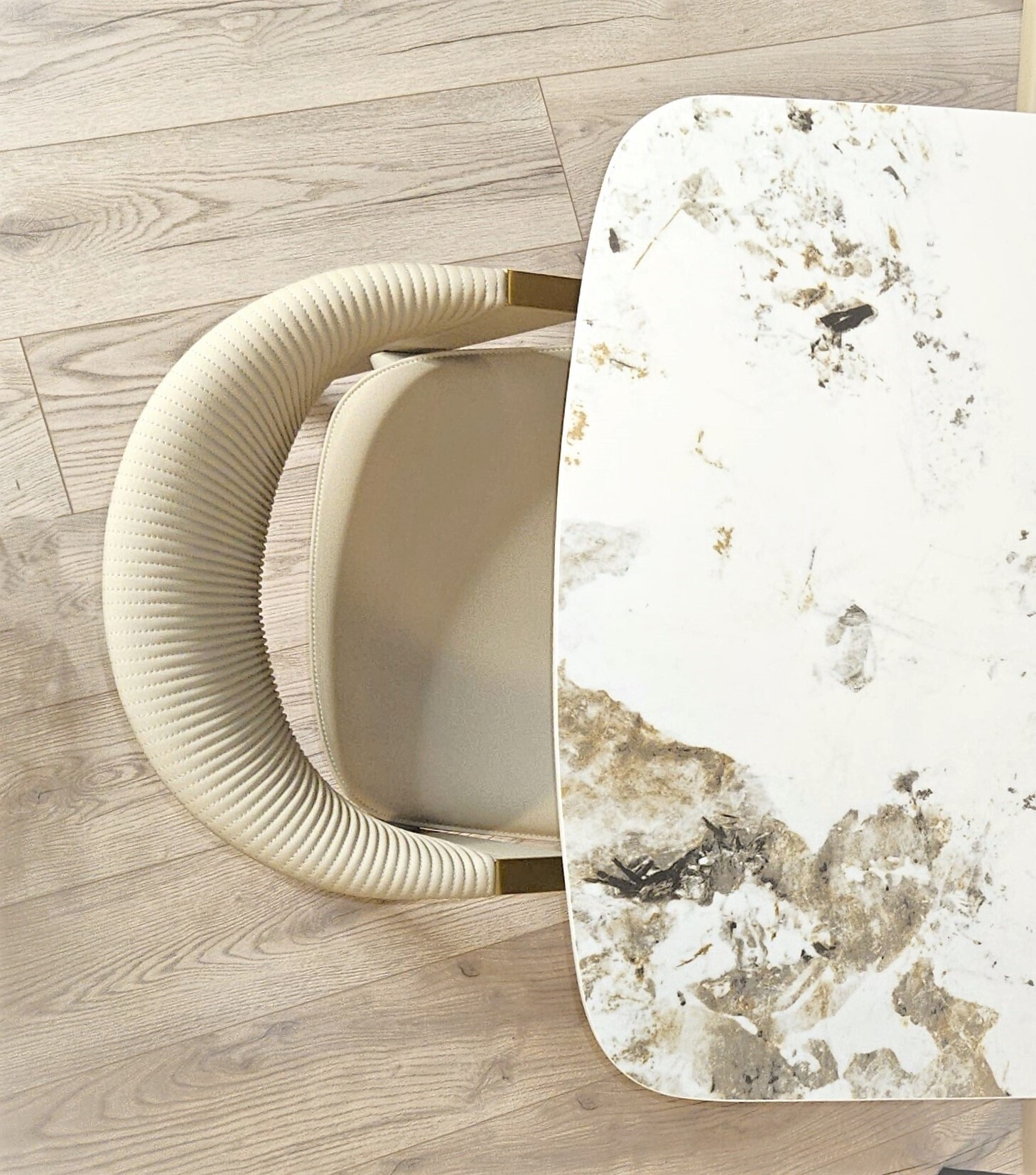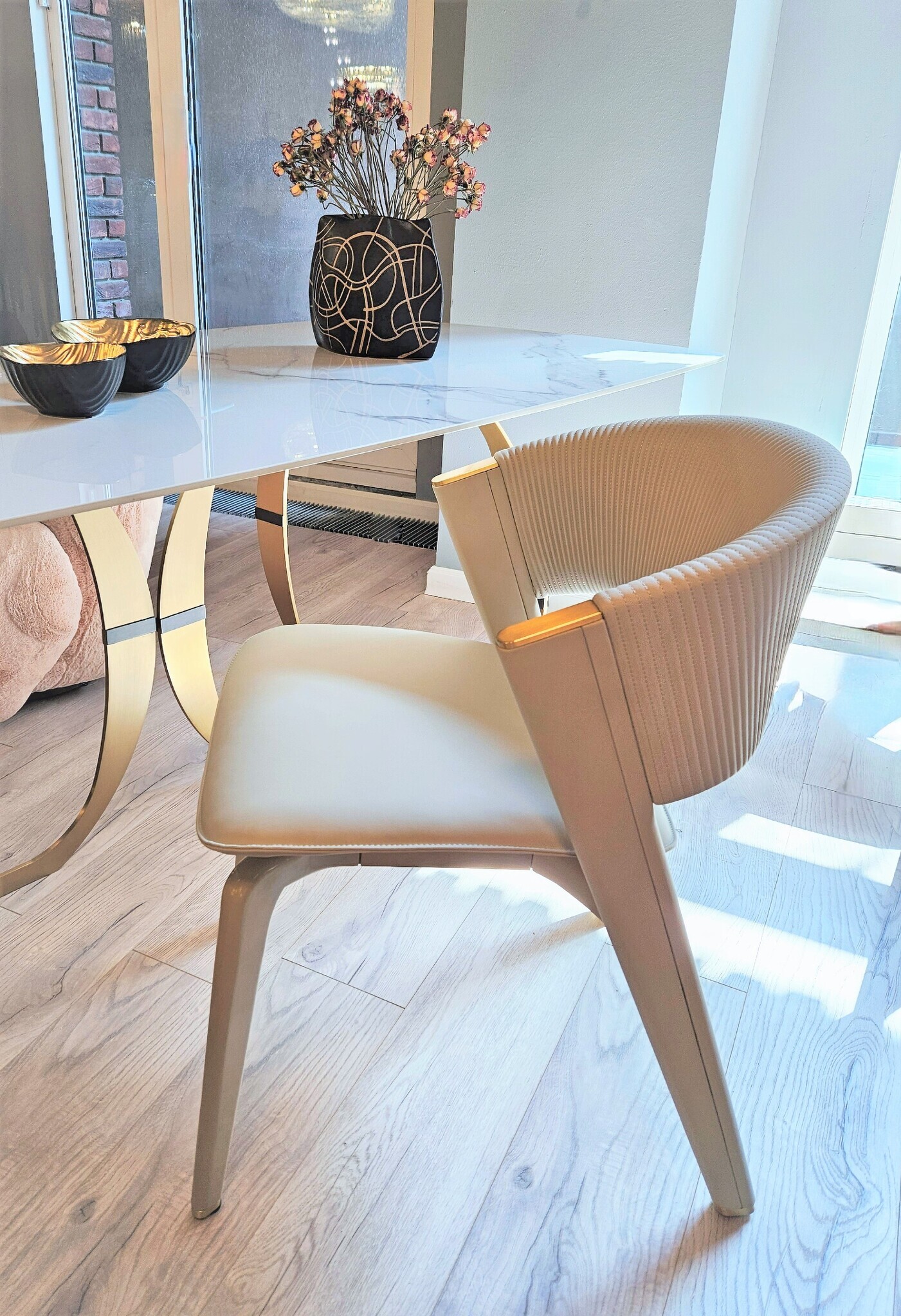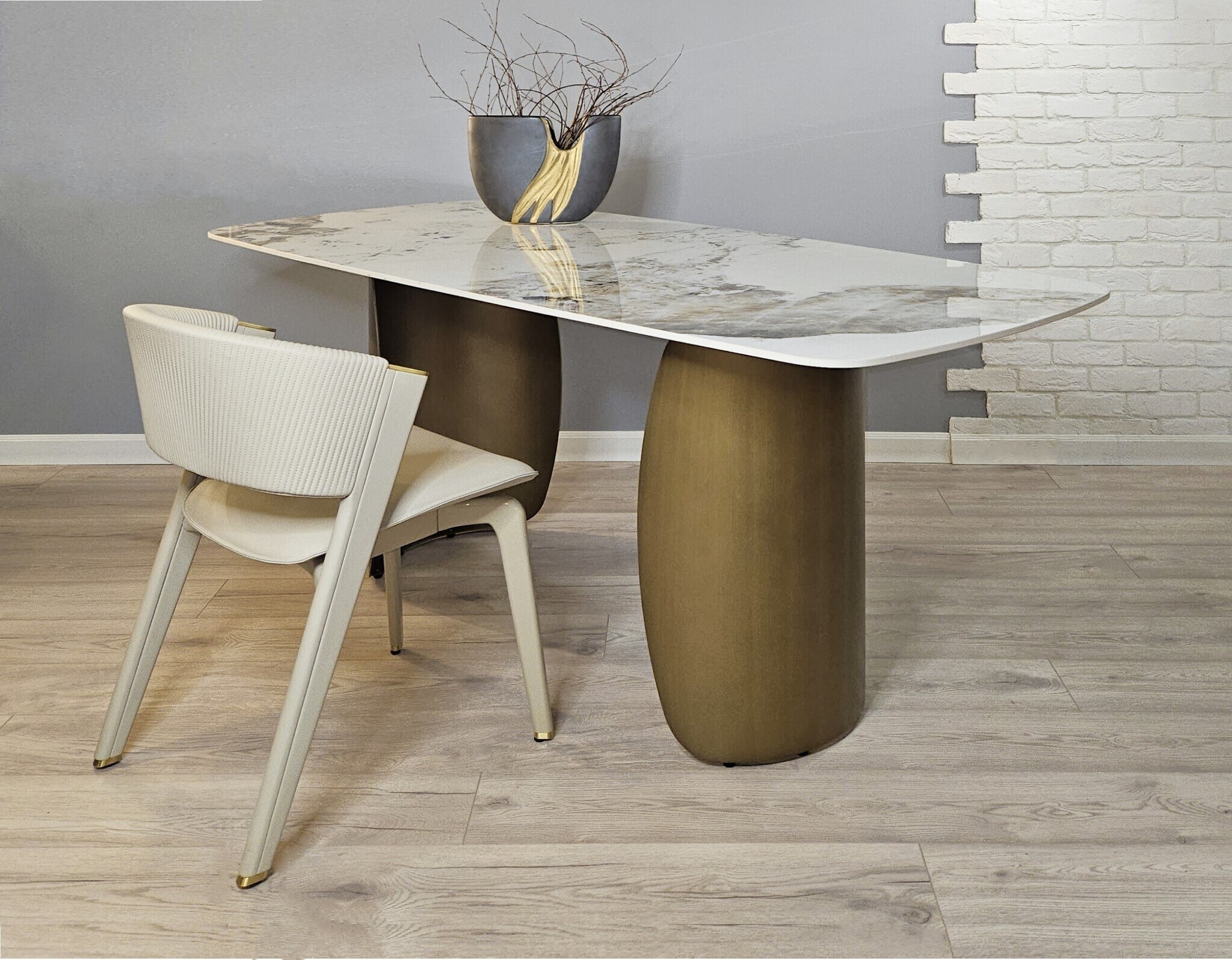 Ножки стула с золотыми вставками, изготовлены из массива дерева, который является долговечным натуральным материалом.