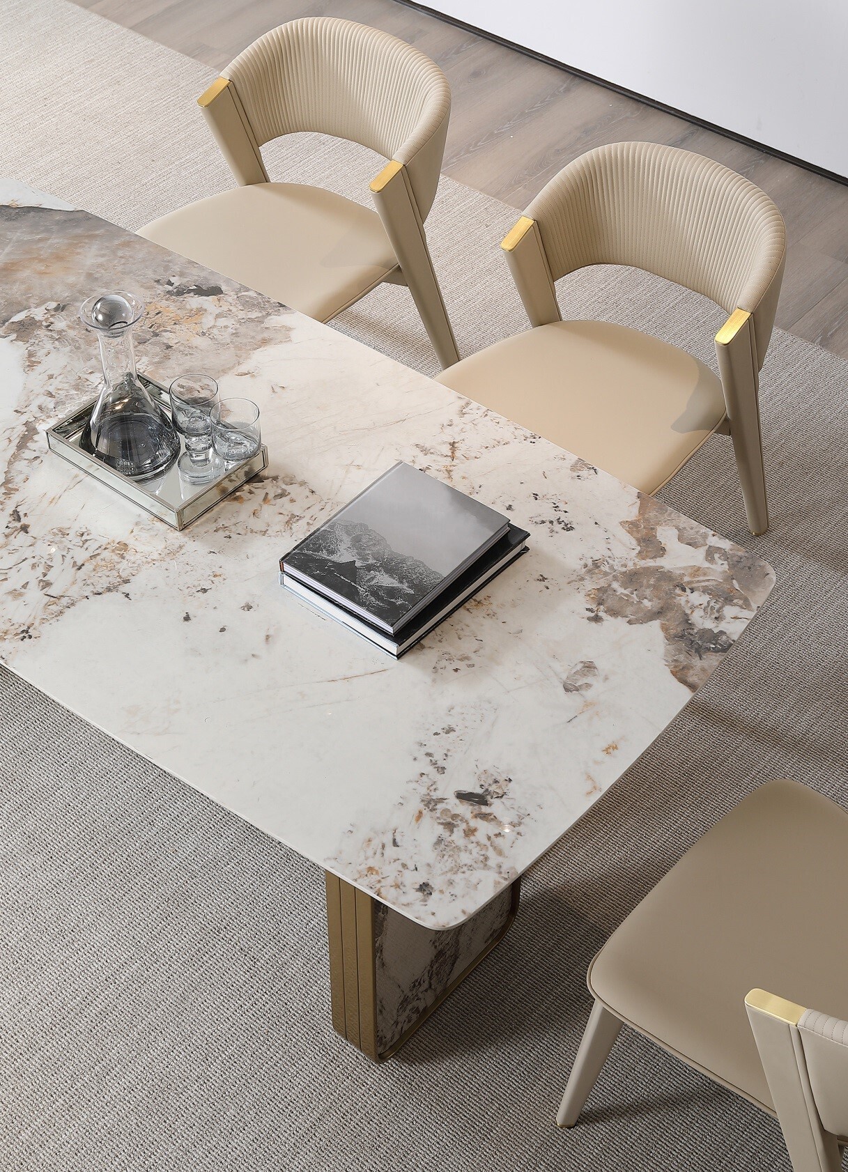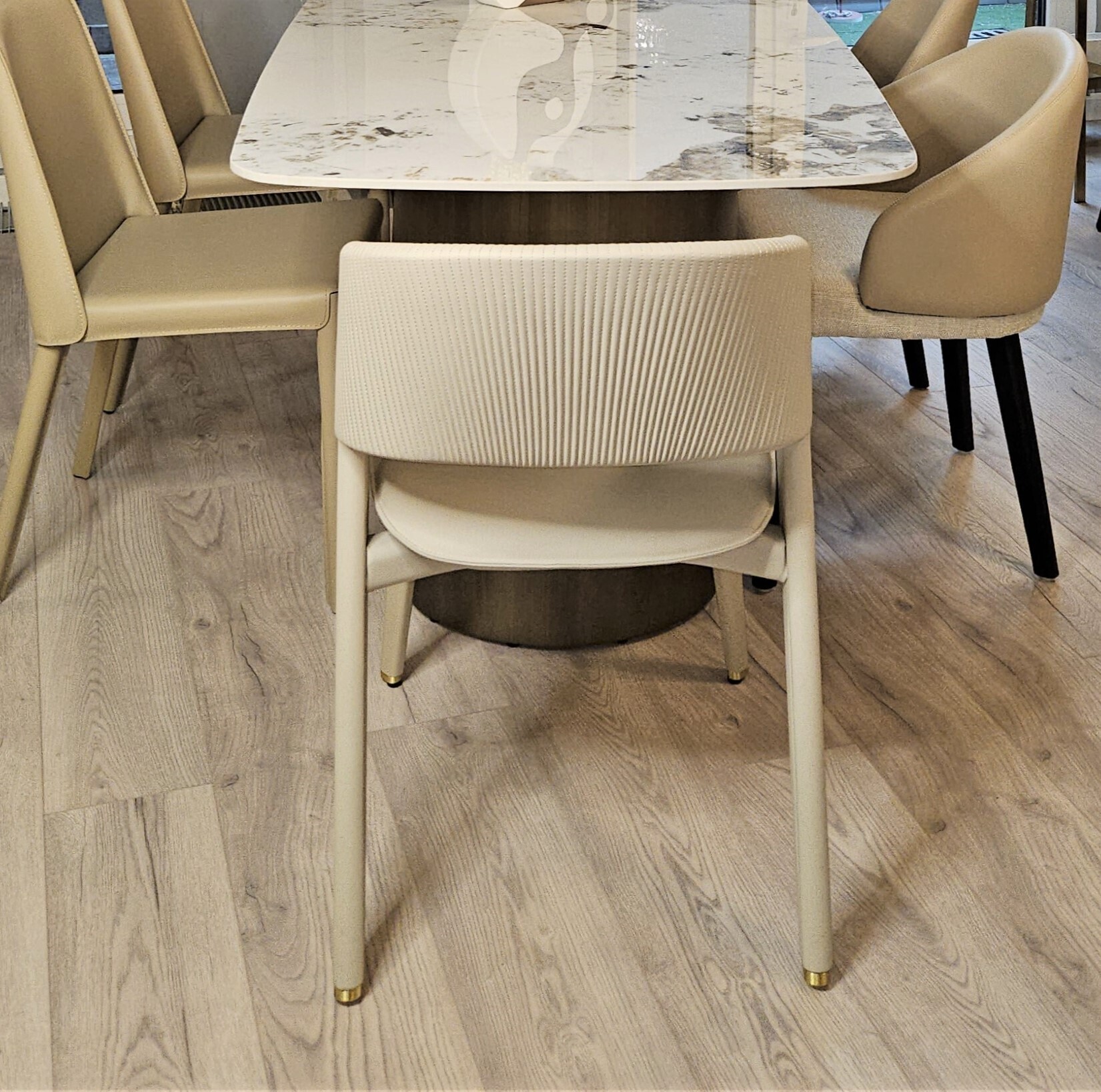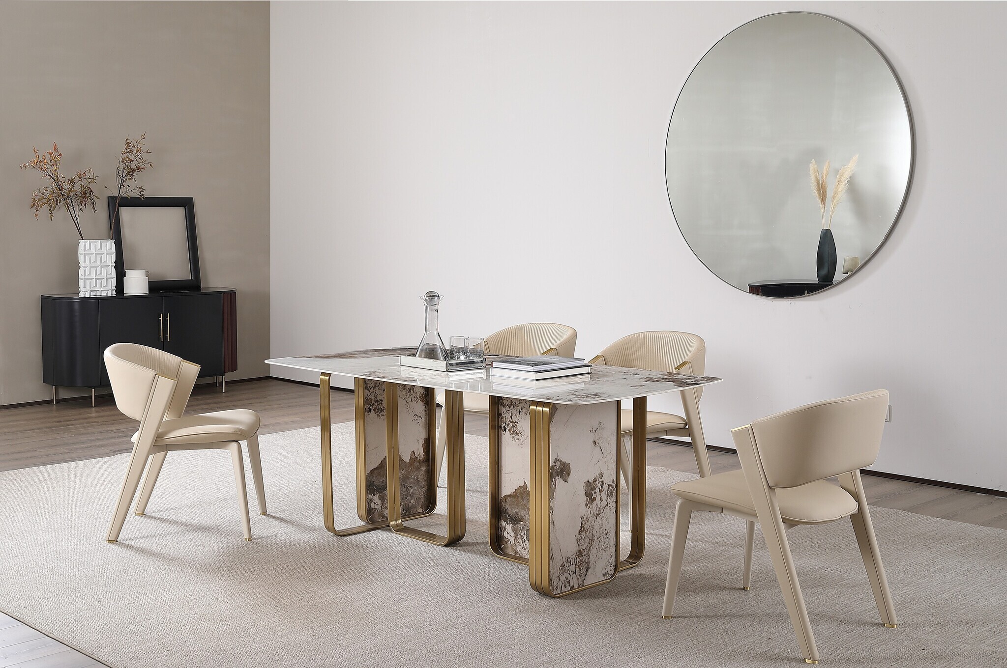 Ножки стула с золотыми вставками, изготовлены из массива дерева, который является долговечным натуральным материалом.