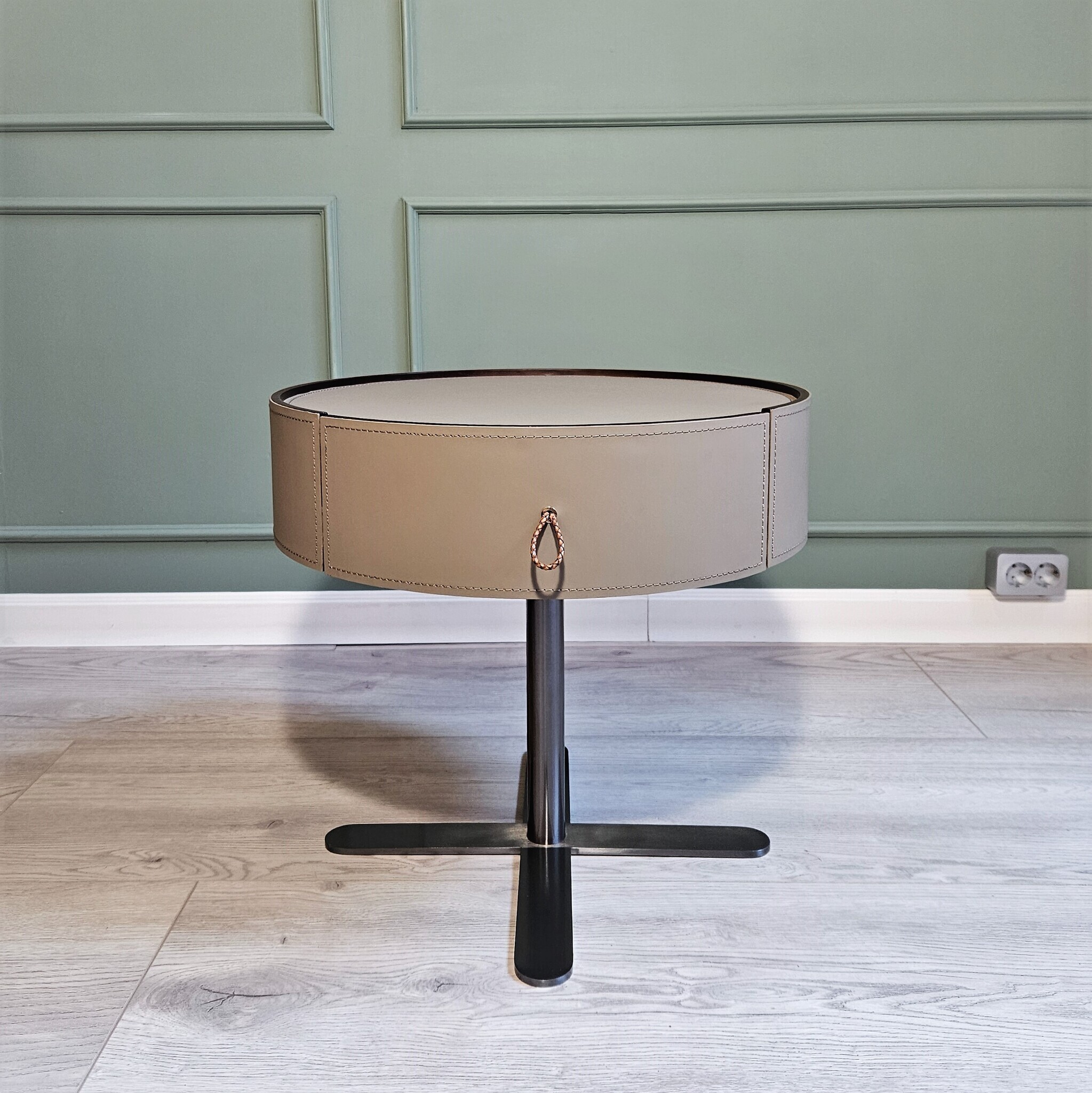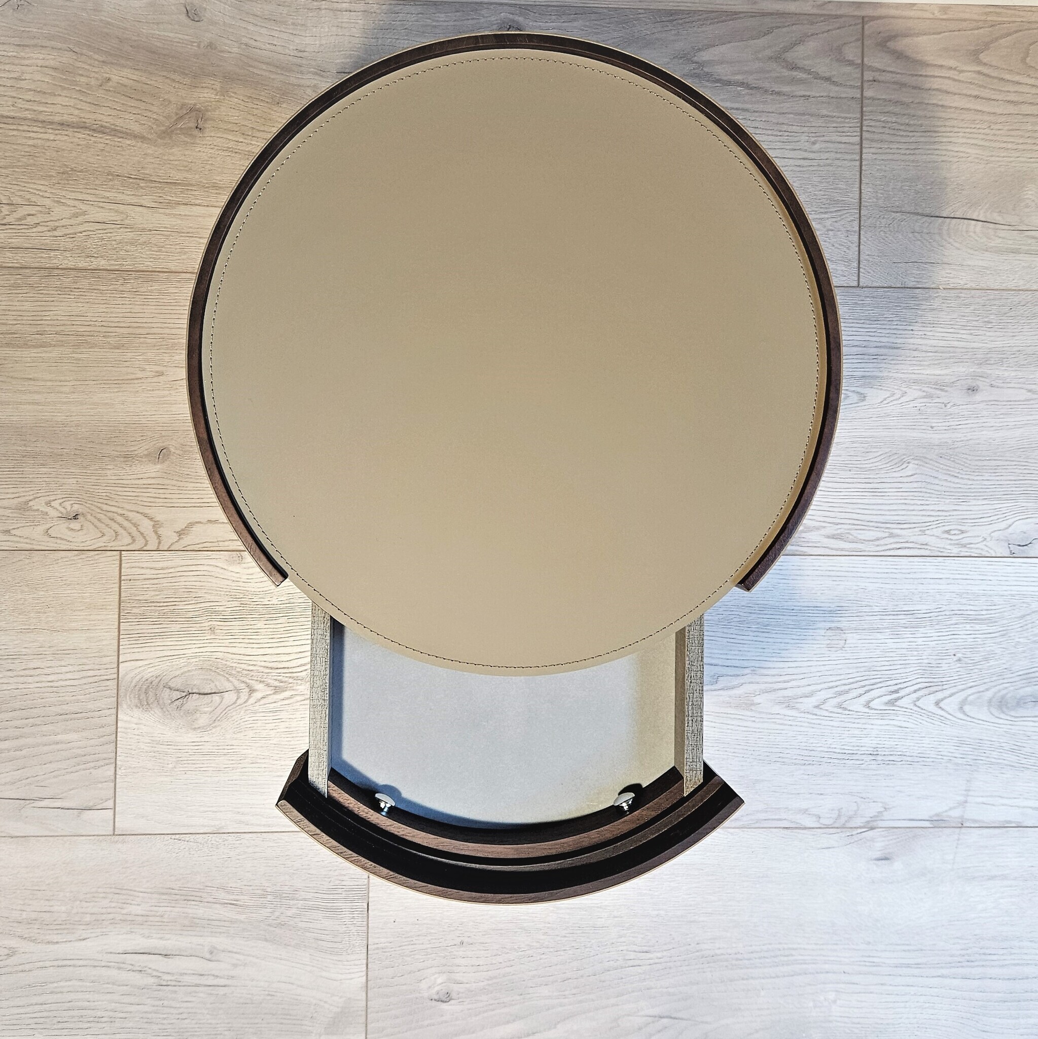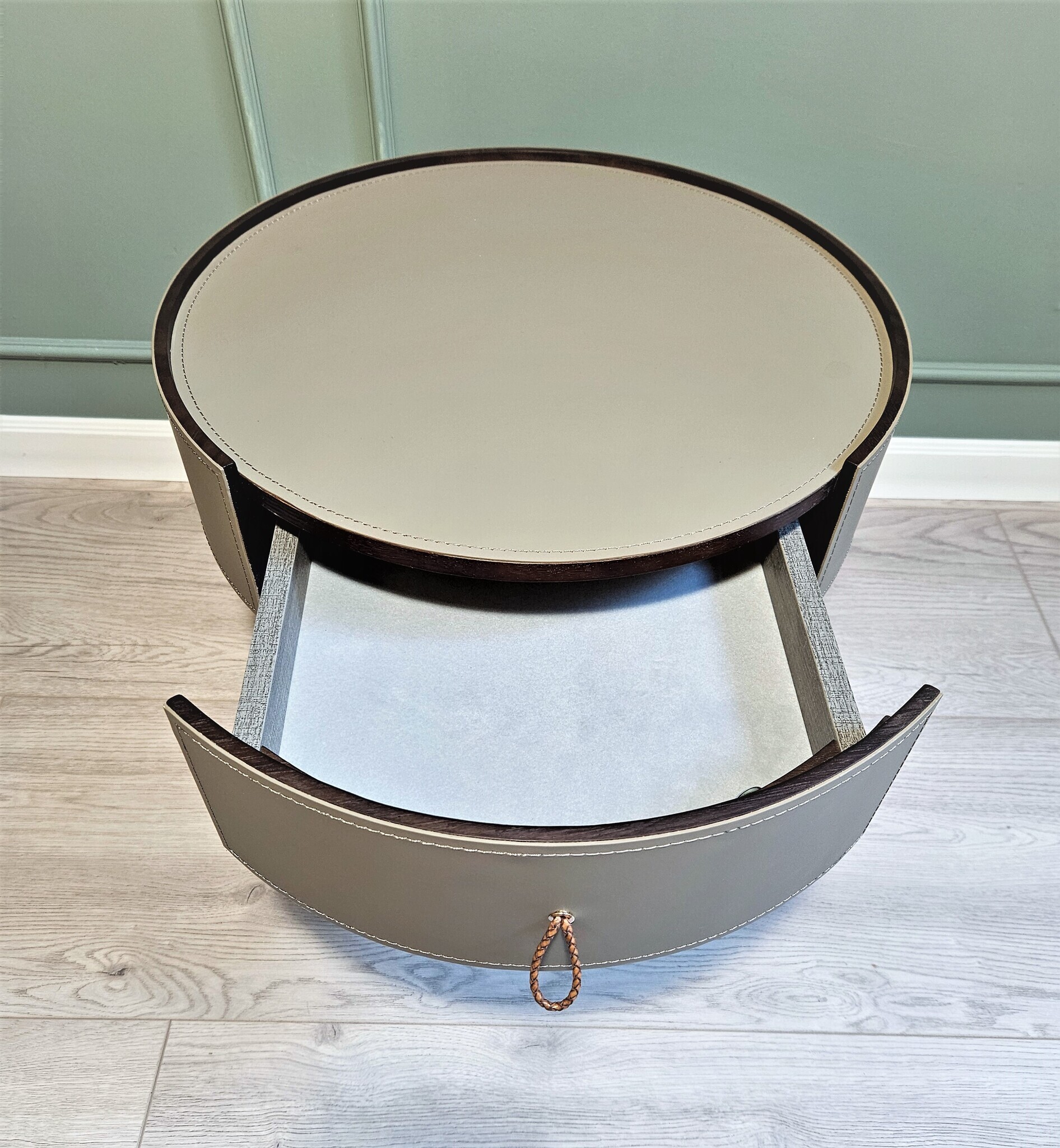 Тумба оснащена ящичком, на дне - искусственный бархат. Выдвижная система со скрытым креплением и доводчиком.