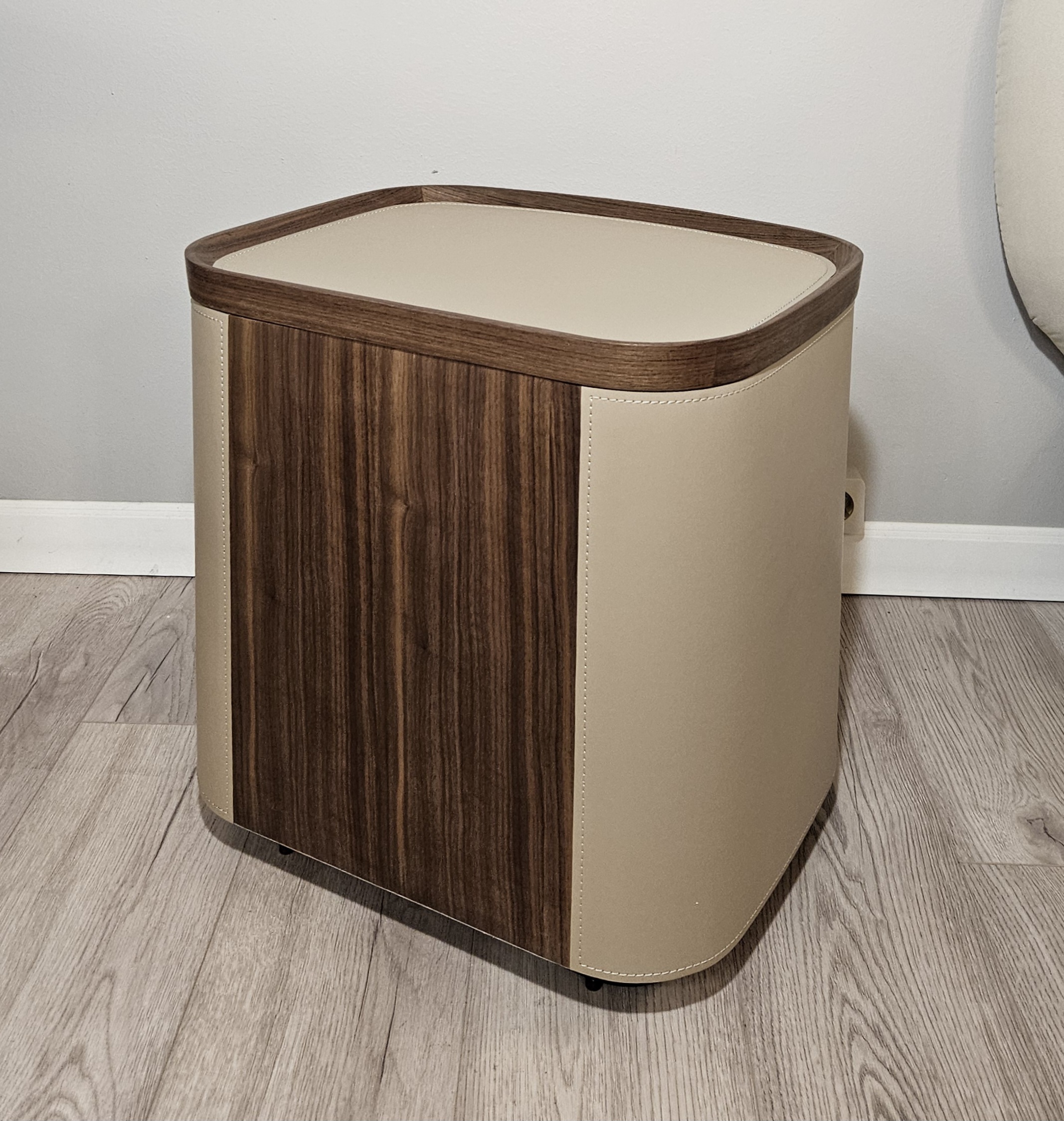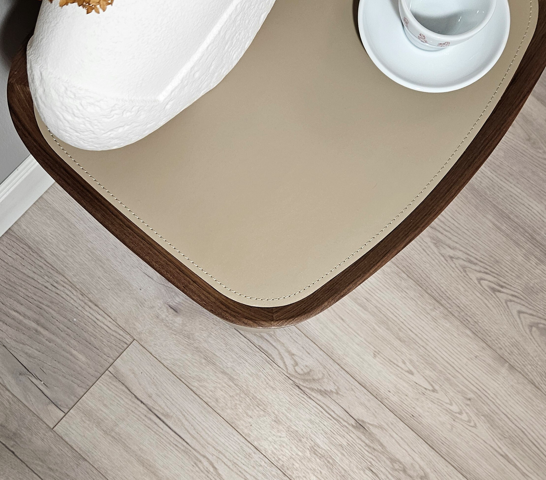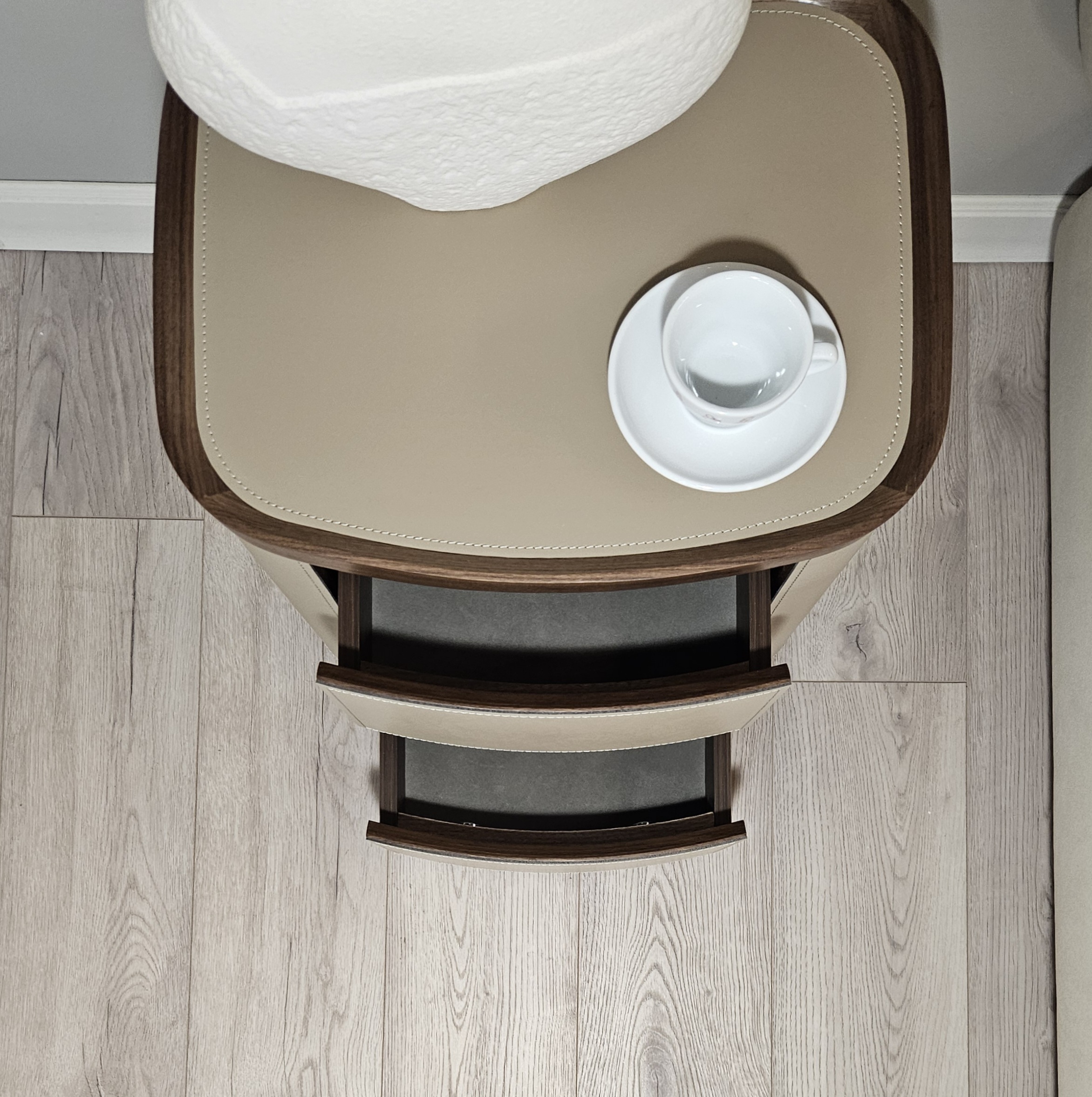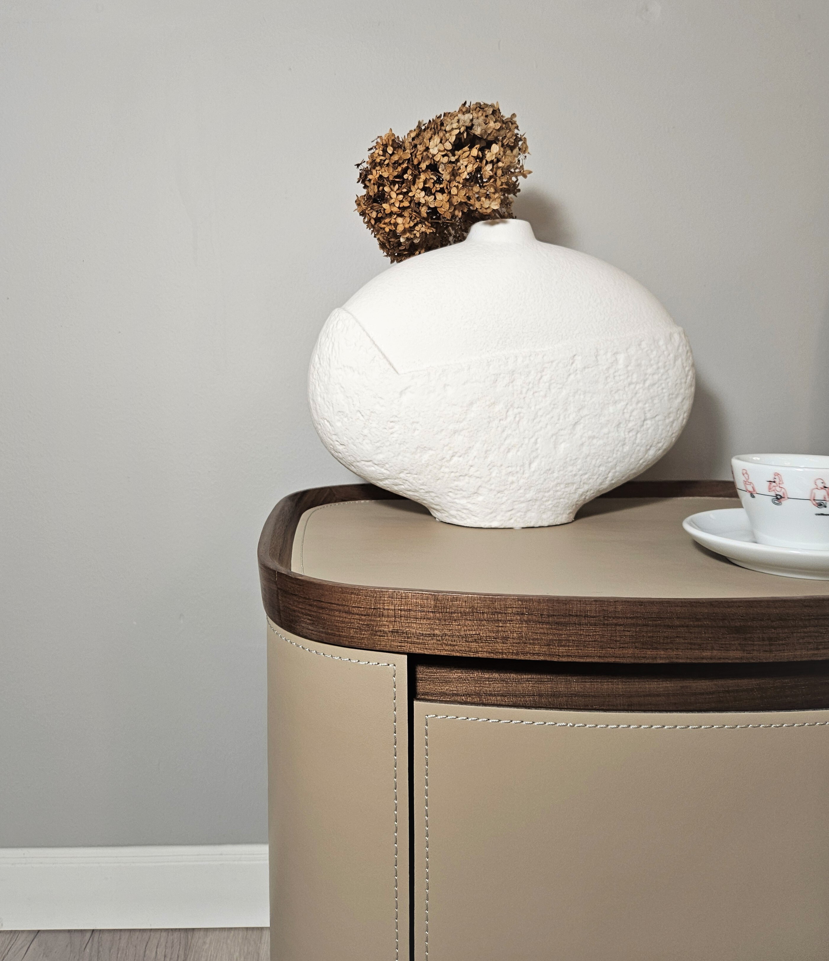 Стильный дизайн, округлая форма и натуральные материалы делают тумбу подходящей для разных стилей интерьера.
