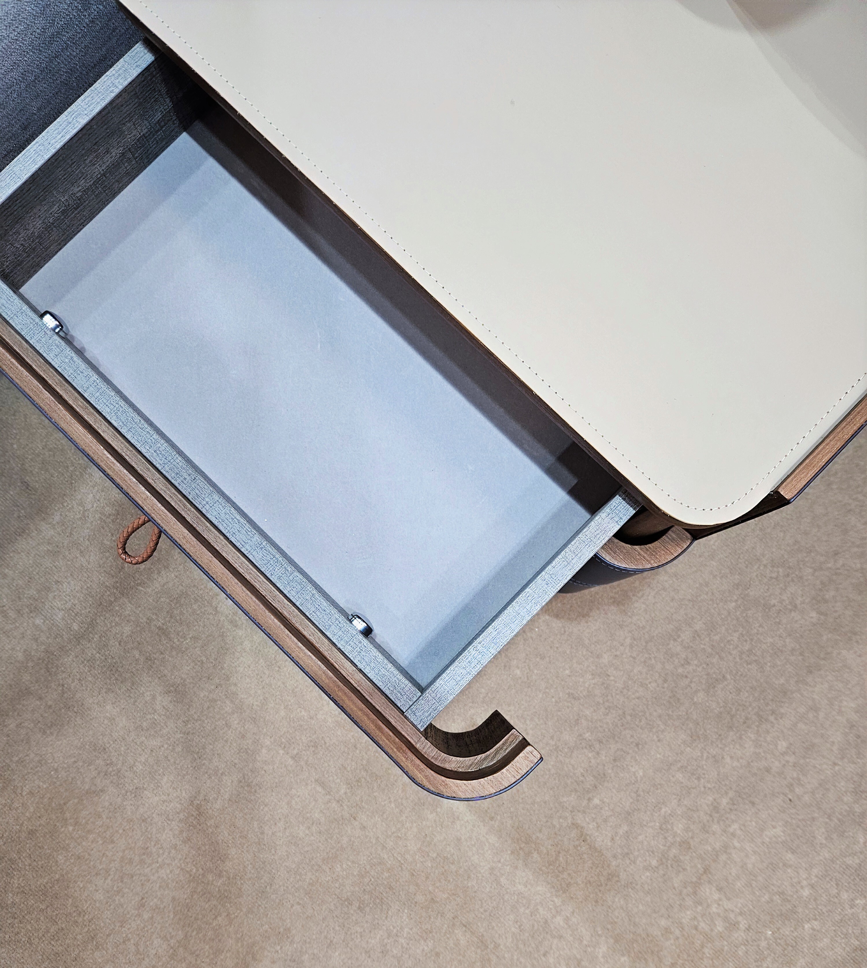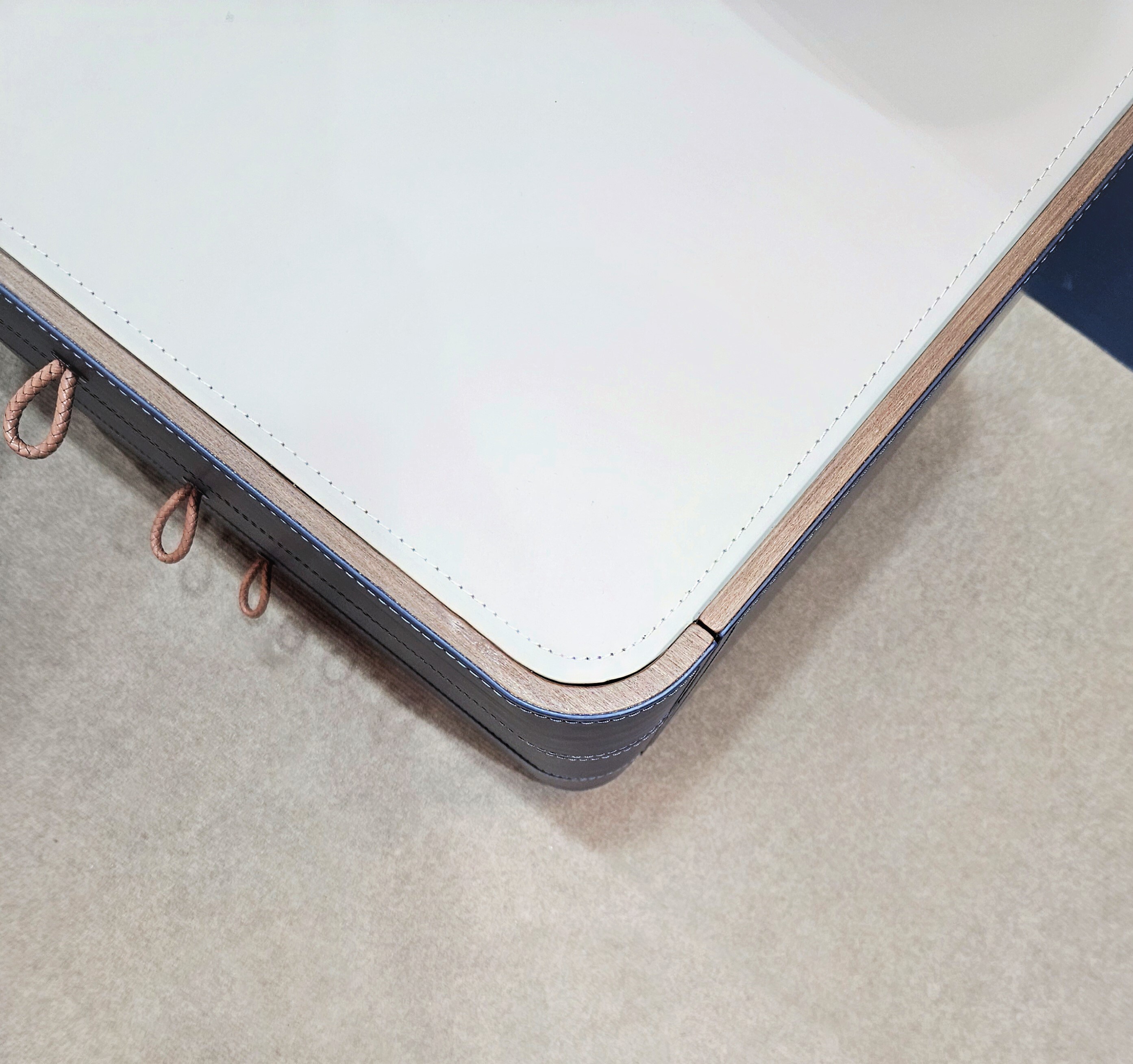 Столешница из экокожи песочного цвета.
