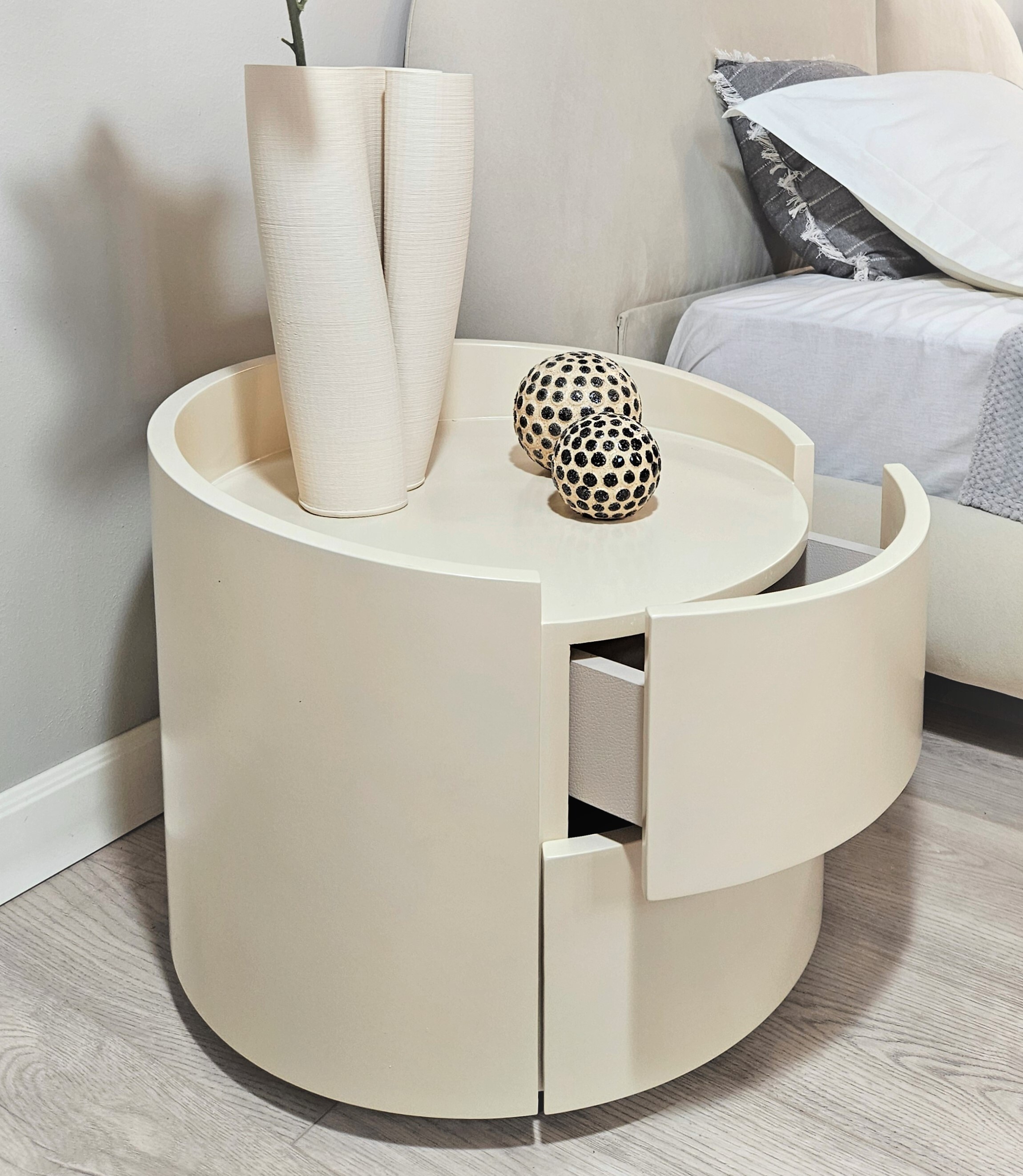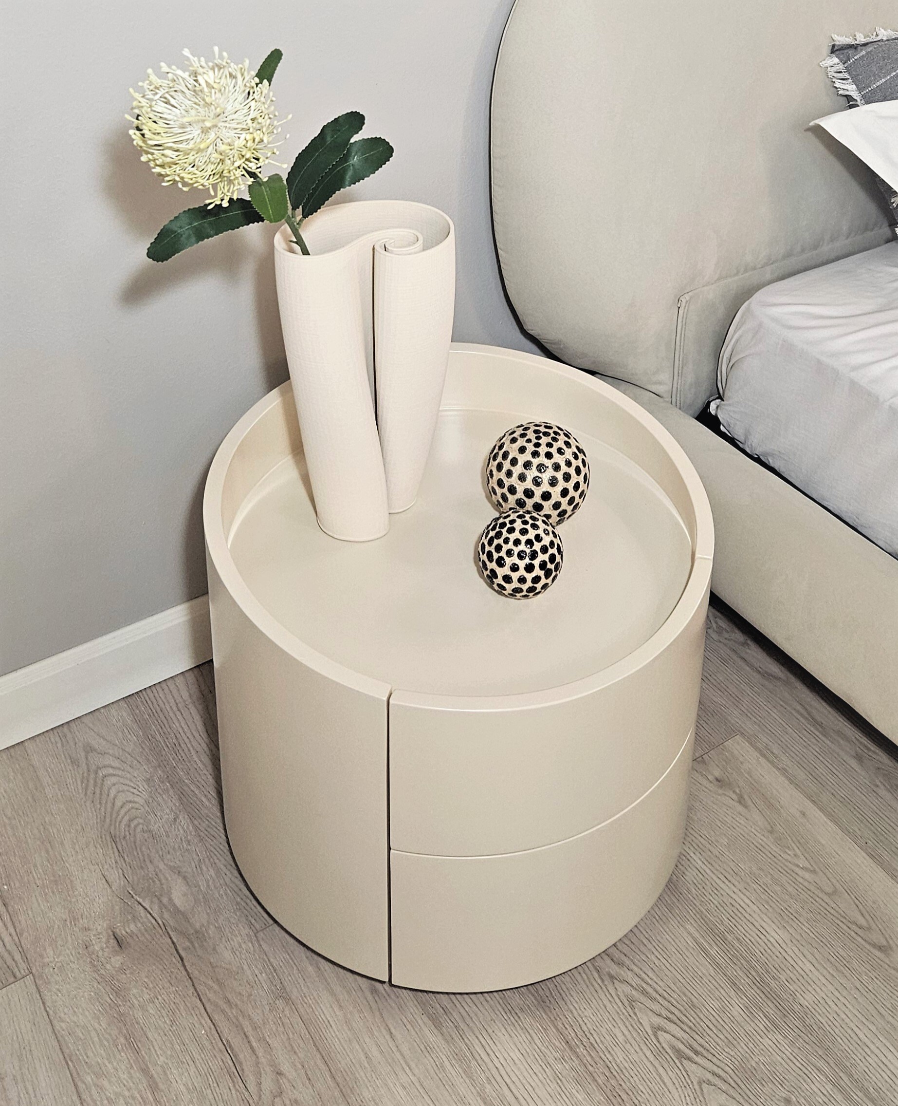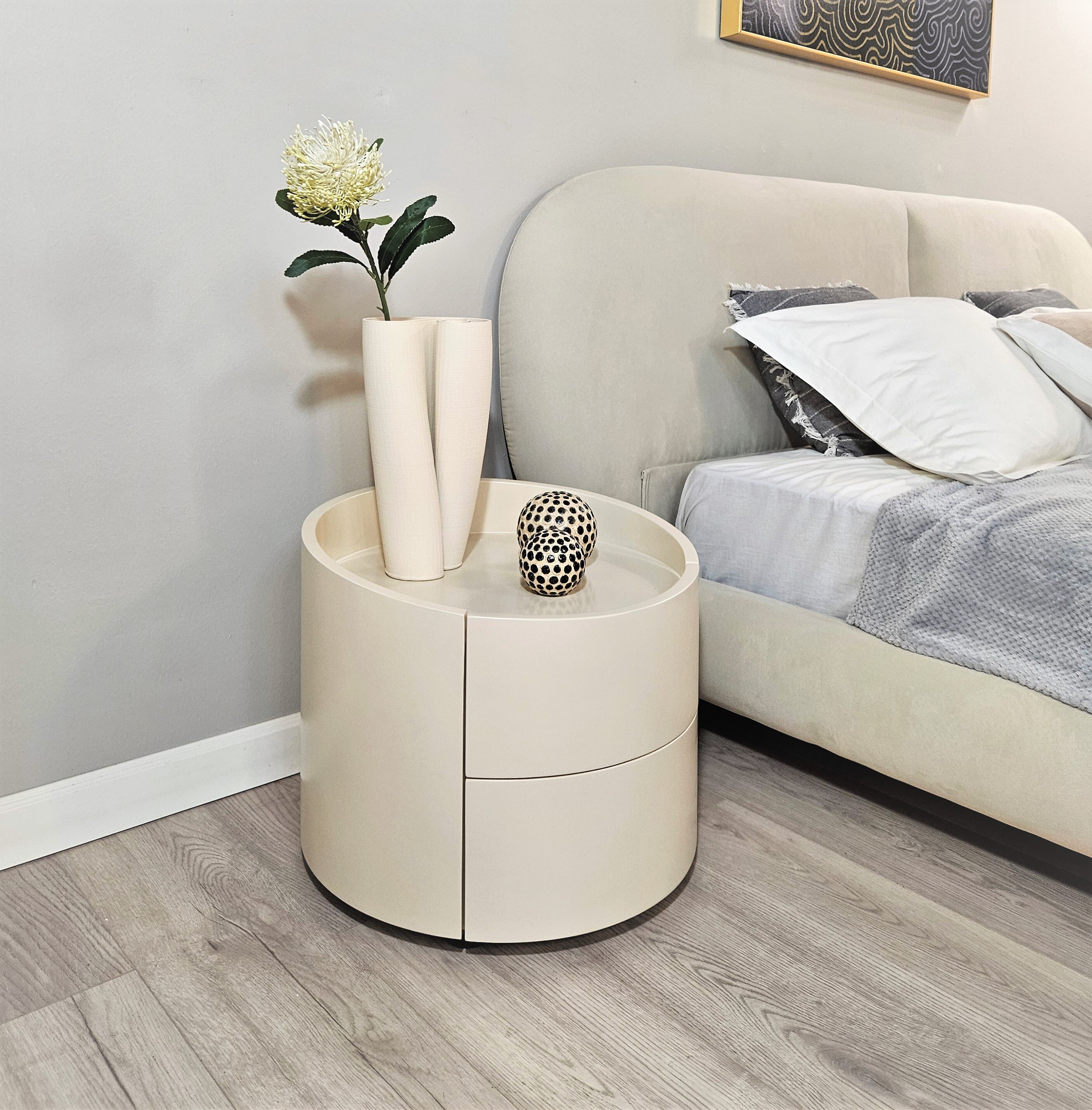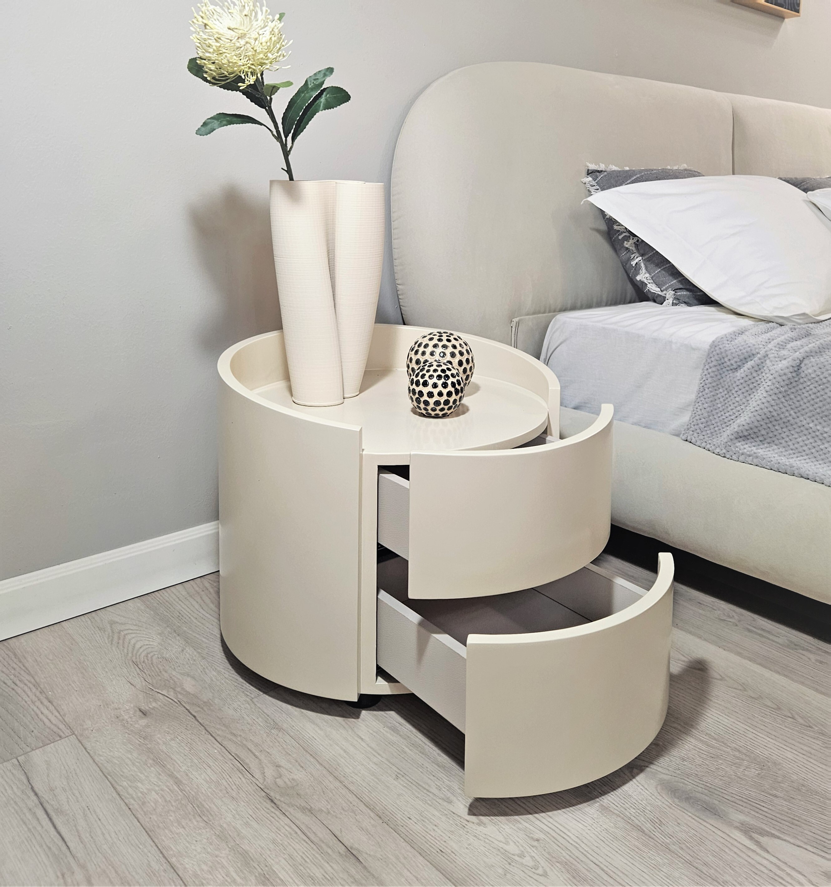 Элегантное обрамление вдоль края поверхности тумбы не позволит предметам падать.