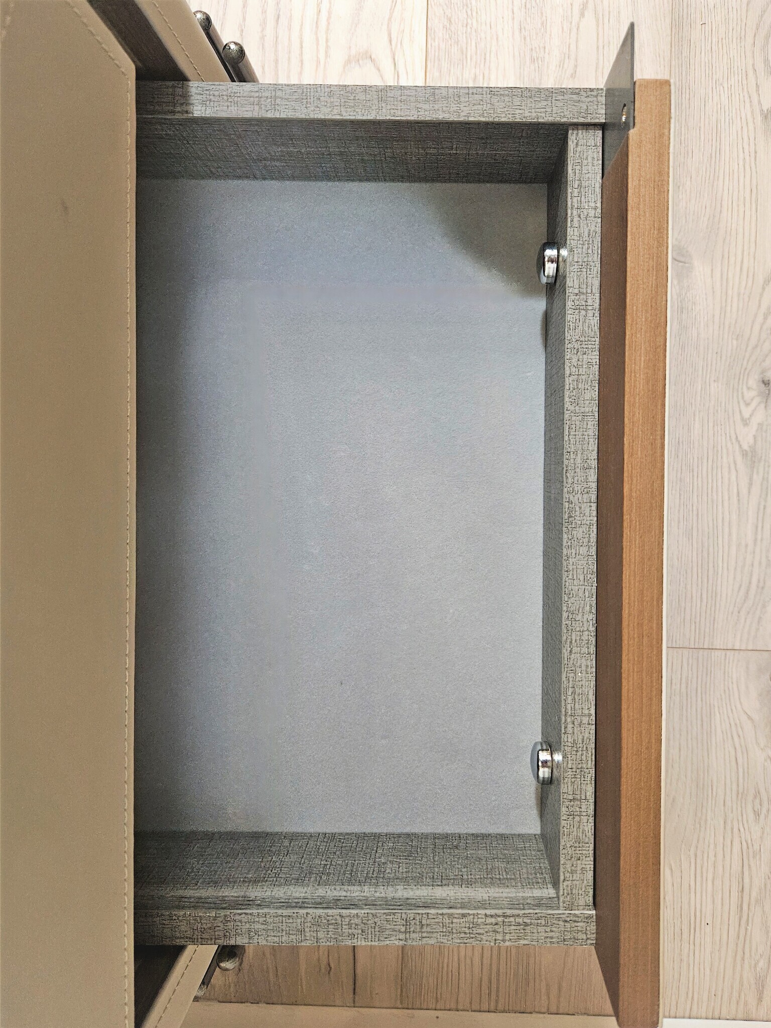 Легкое выдвижение ящиков за внешний фасад. Выдвижная система со скрытым креплением и доводчиками.
