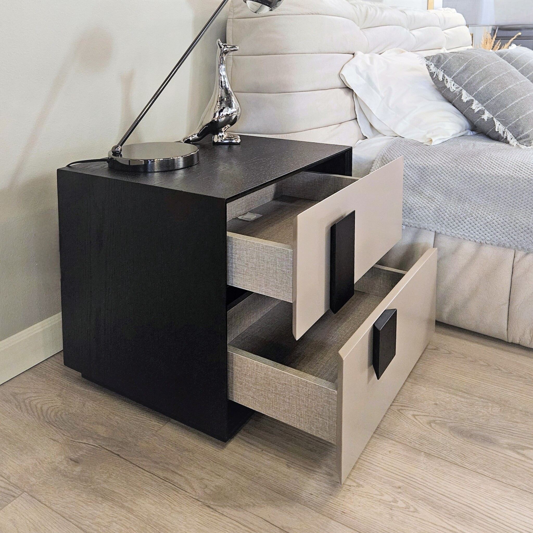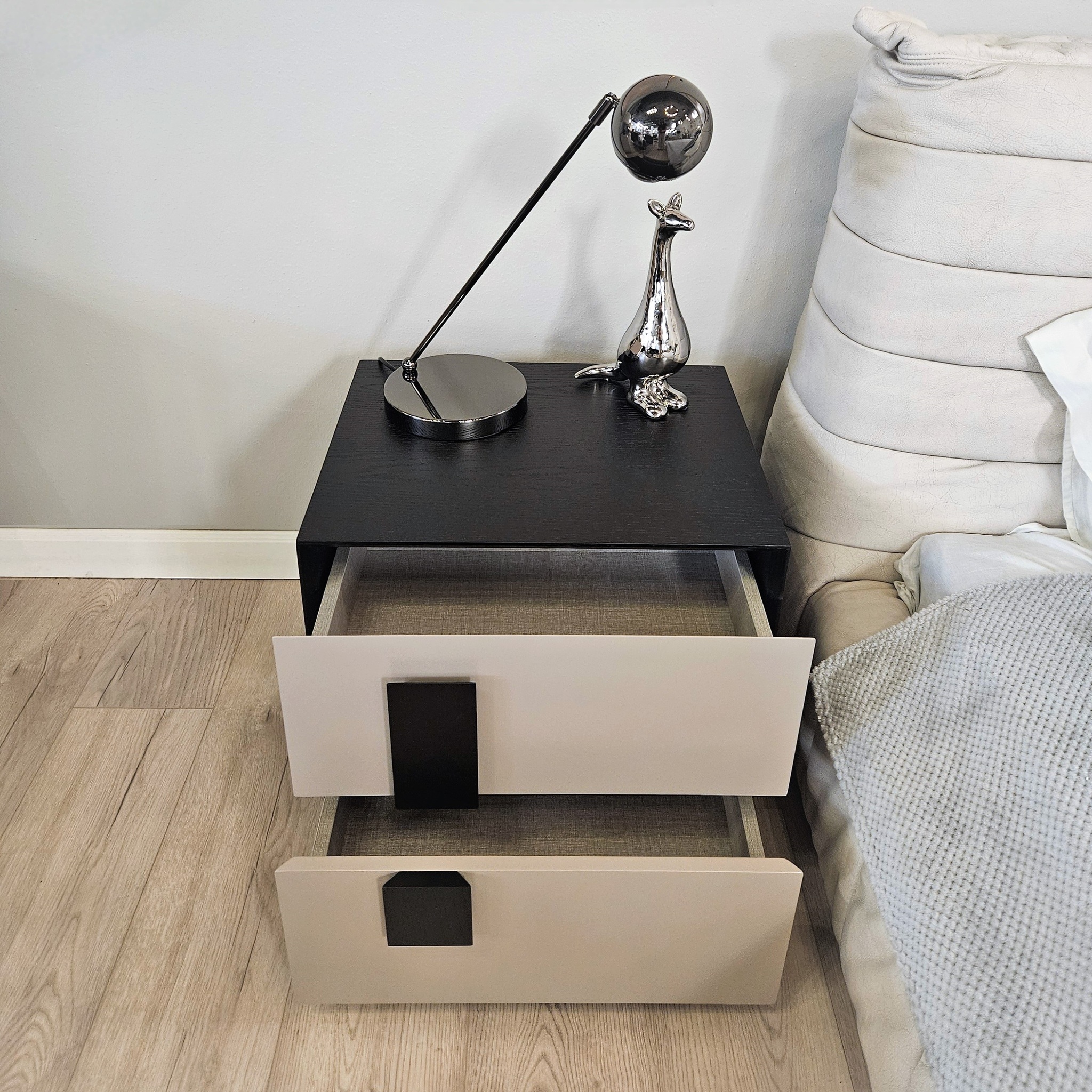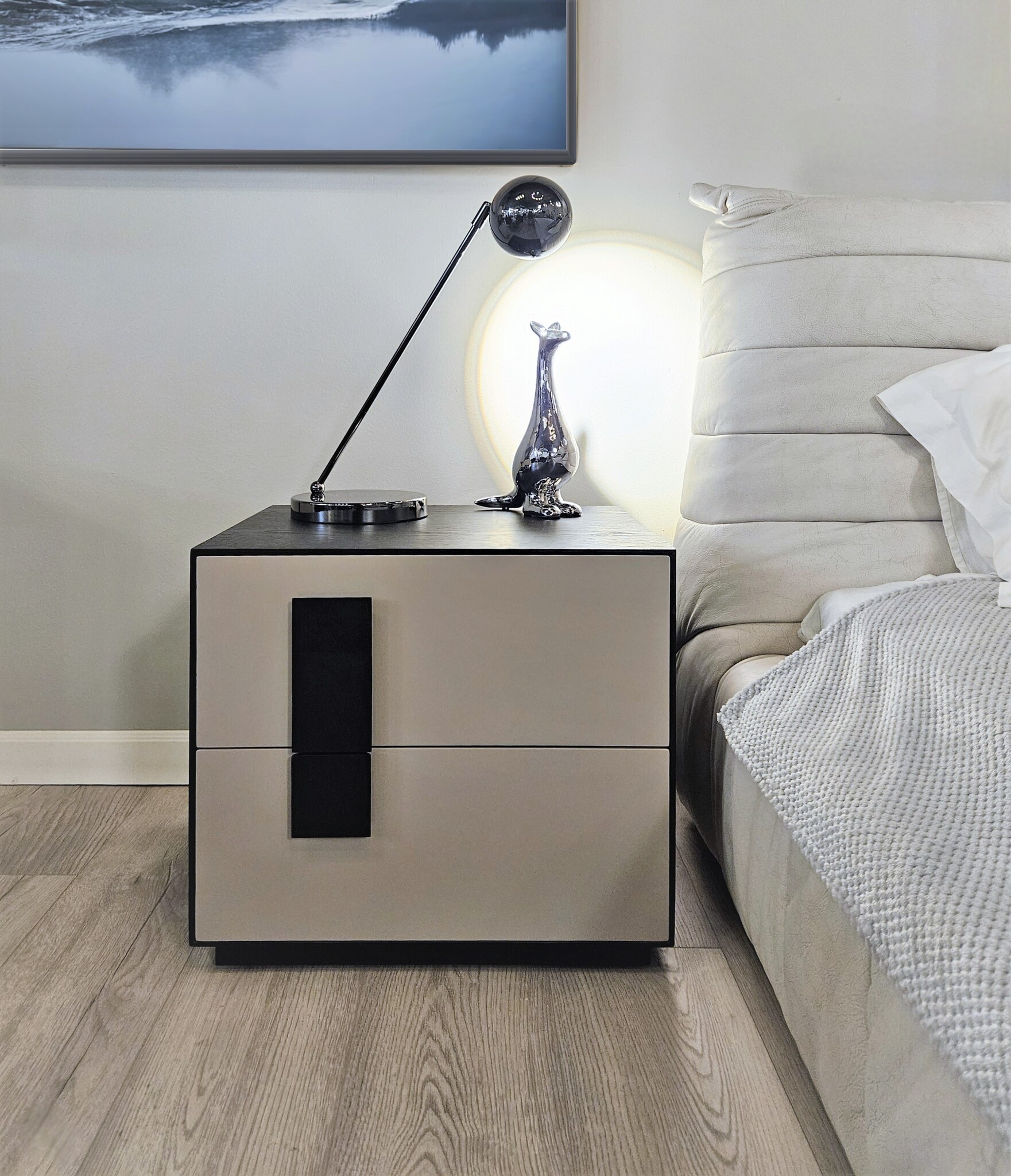 Геометрическая четкость линий, гладкая поверхность и качественные материалы делают тумбу подходящей для разных стилей интерьера.