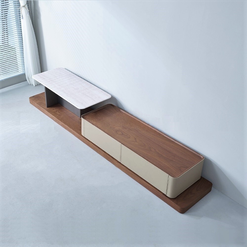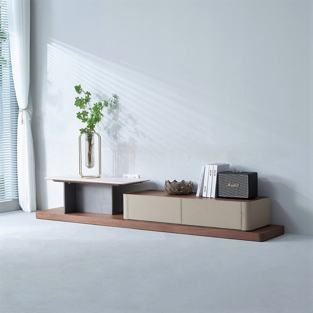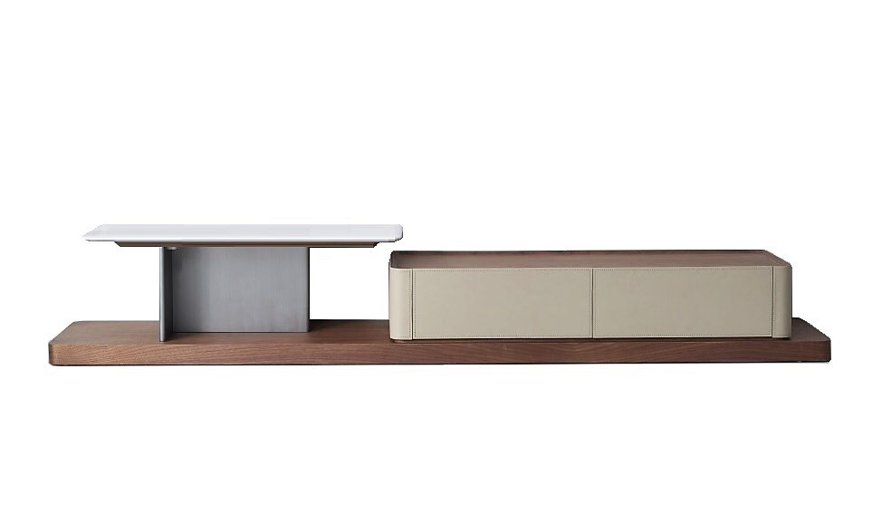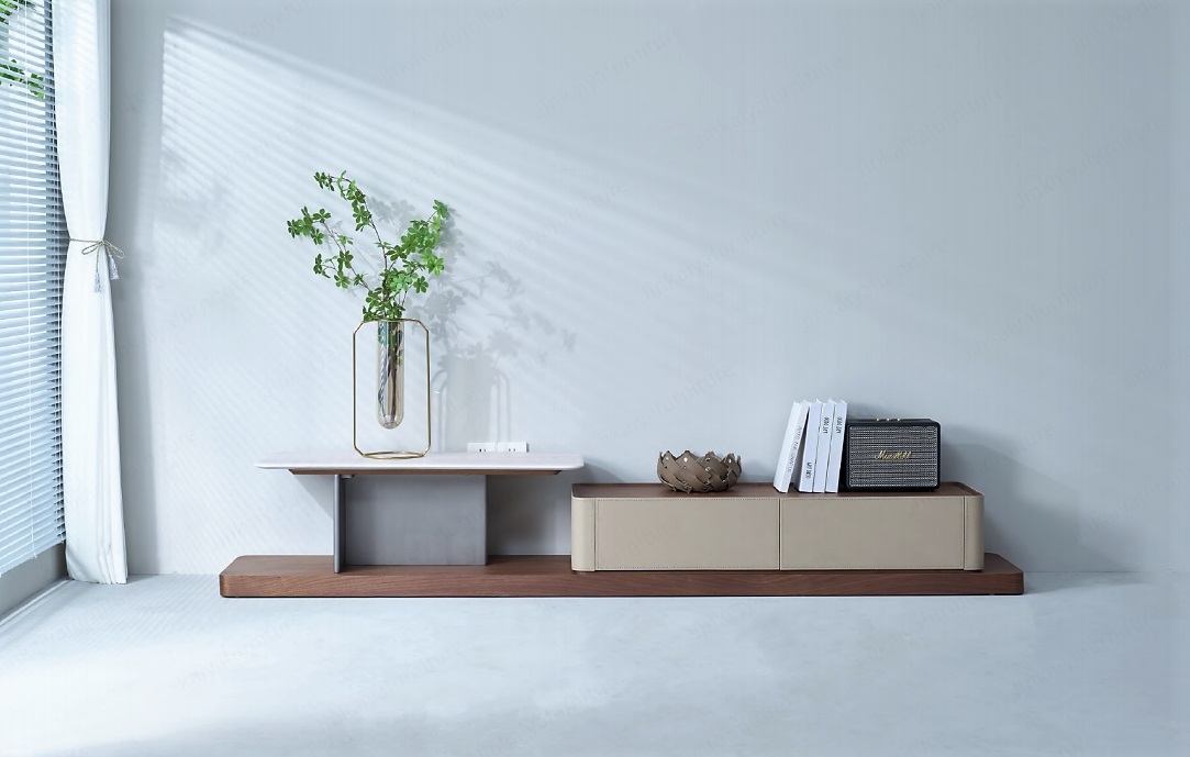 Тумба идеально сочетает эстетику и функциональность, предлагая пространство для хранения мультимедийных устройств и декоративных элементов.