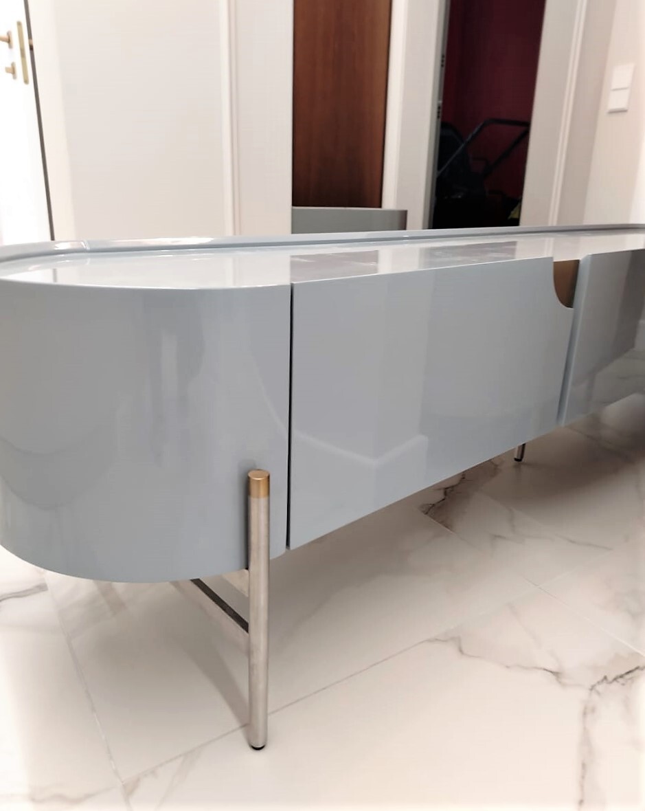 Телевизионная медиа-тумба выполнена из МДФ, покрытие - эмаль.