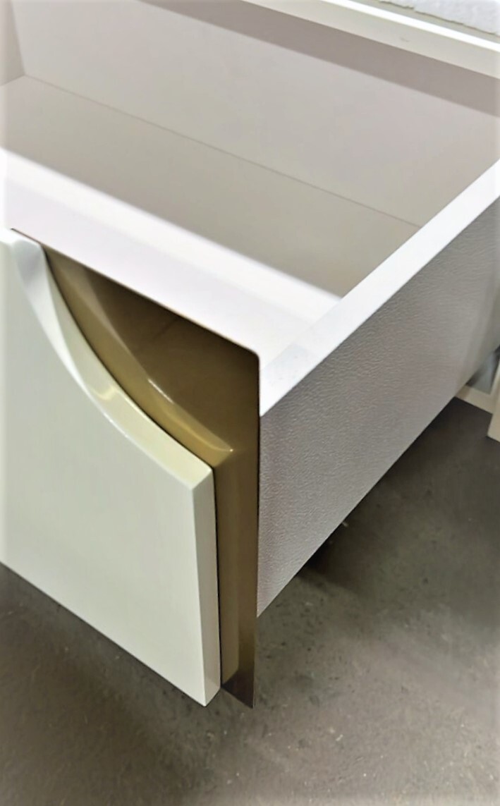 Тумба оснащена тремя выдвижными ящиками со скрытой системой крепления.