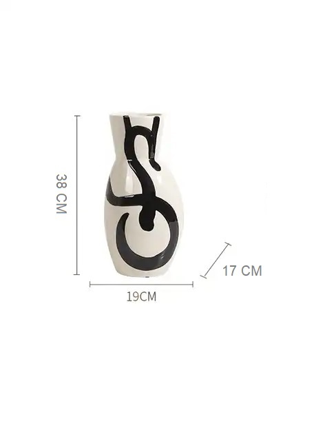 Оригинальная в современный стиле ваза с плавными черными линиями и кремовой текстурой.