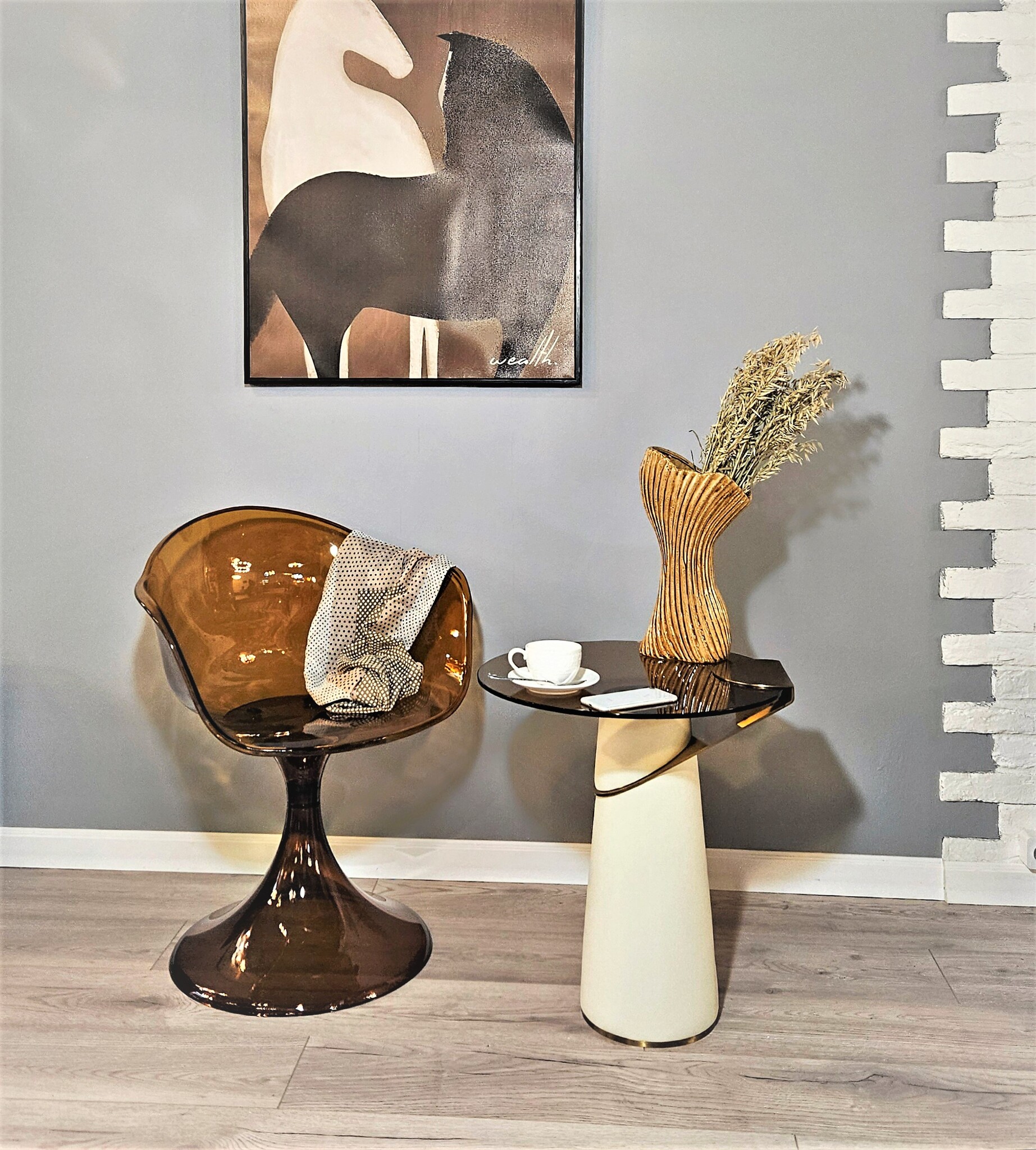 Изящная форма керамической вазы гармонично сочетается с приятной текстурой материала и теплой цветовой гаммой, придающей поверхности изделия особый шарм.