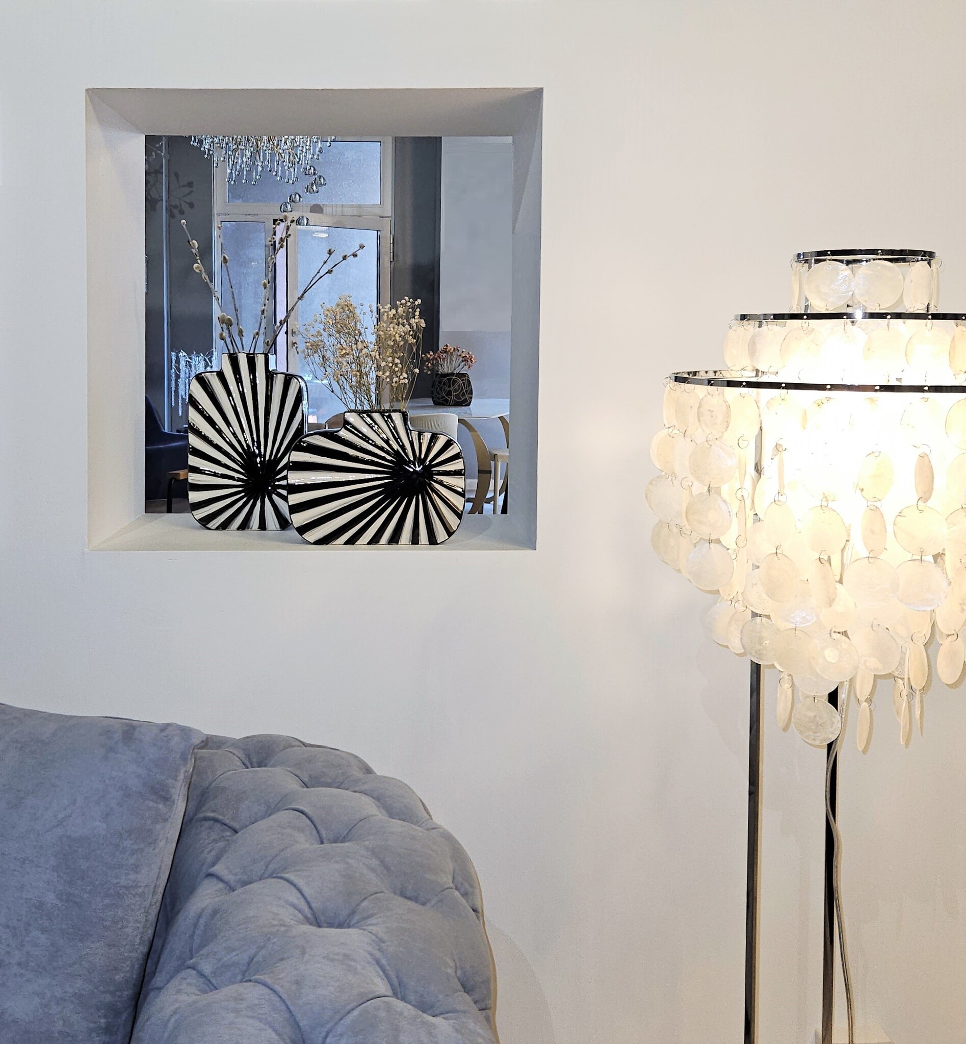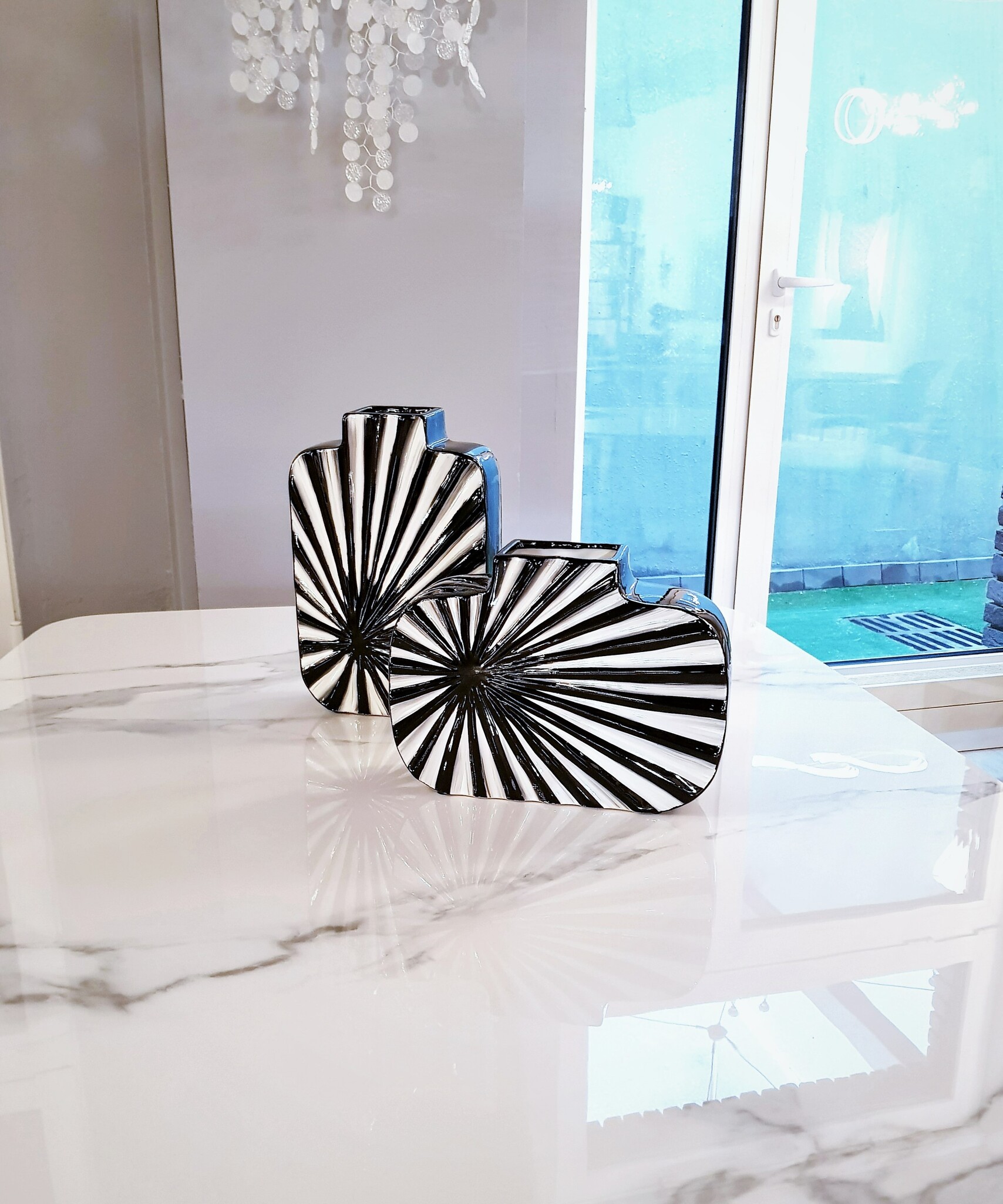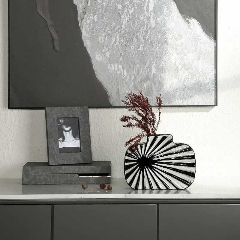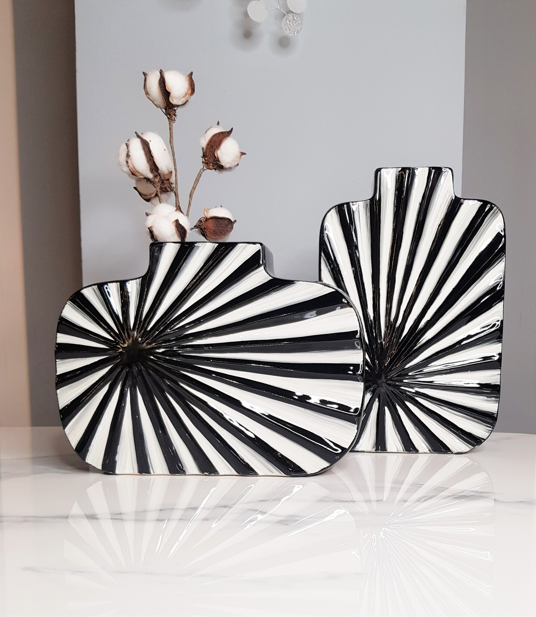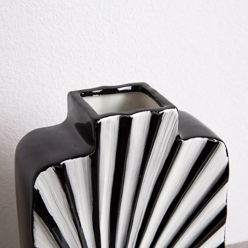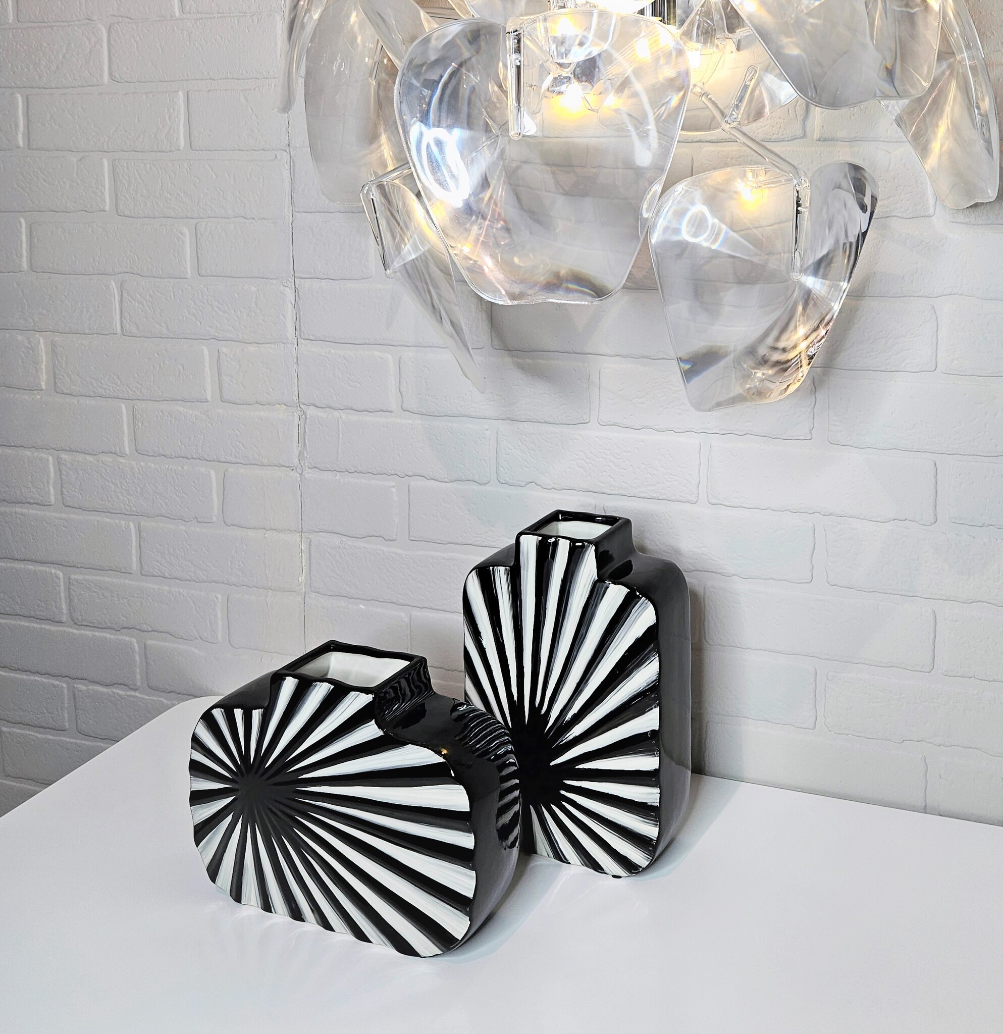 Дизайнерская керамическая ваза в скандинавском стиле с черно-белой текстурой станет украшением любого интерьера.
