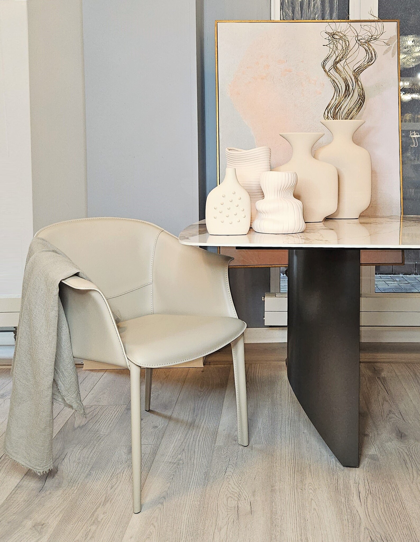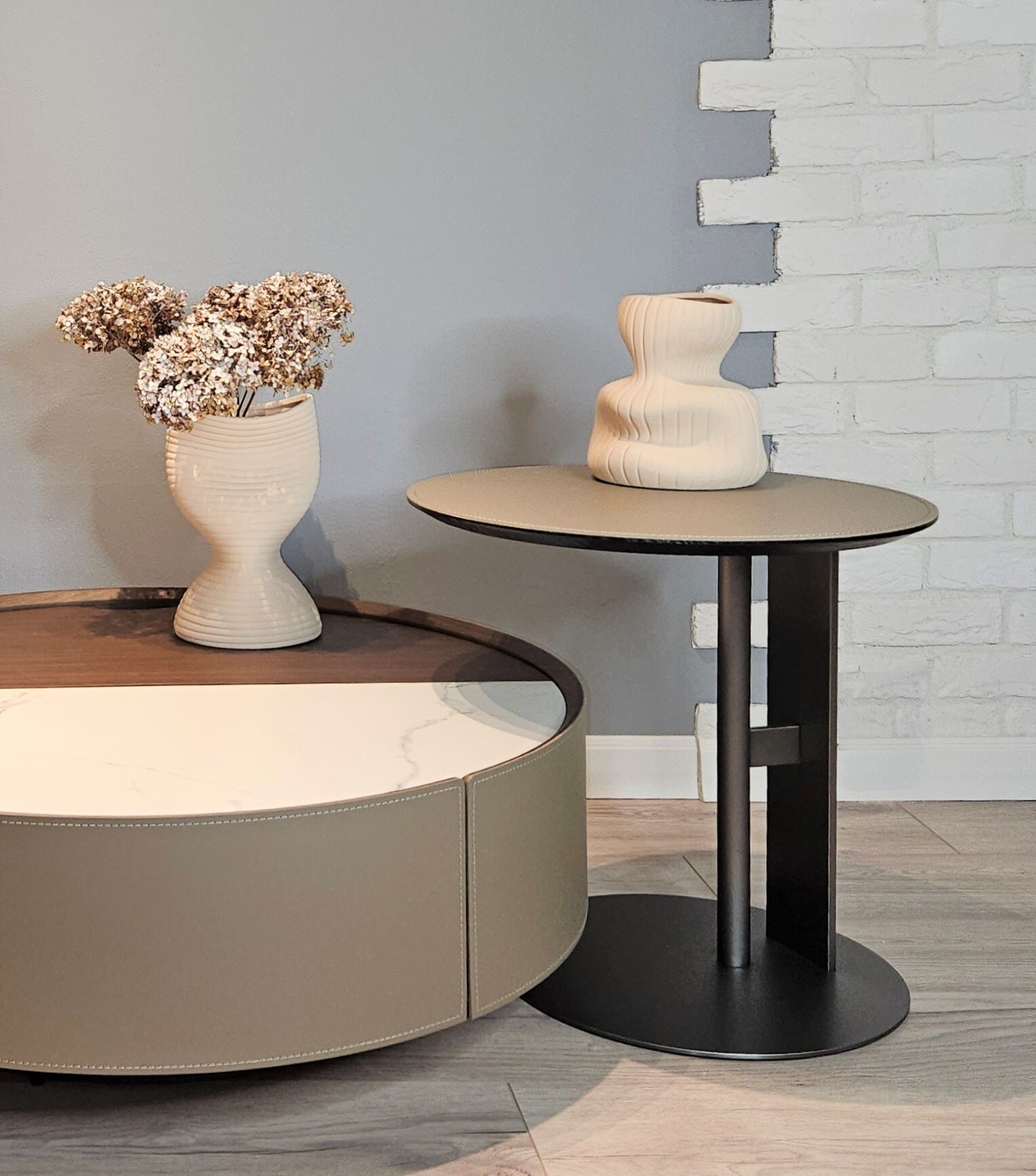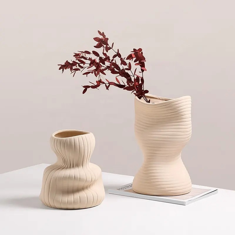 Современная ваза со сложной текстурой и рельефным узором. Она добавит интерес и глубину в интерьер и позволит создать уникальную композицию с разнообразными цветами.